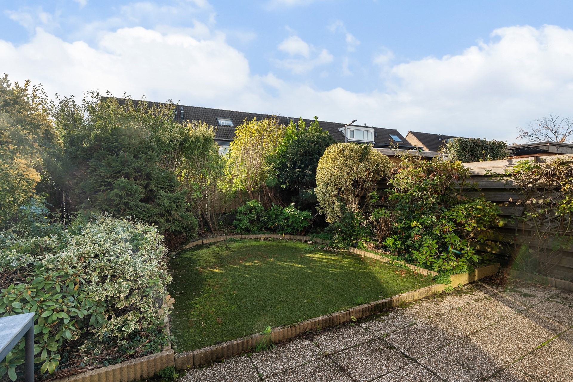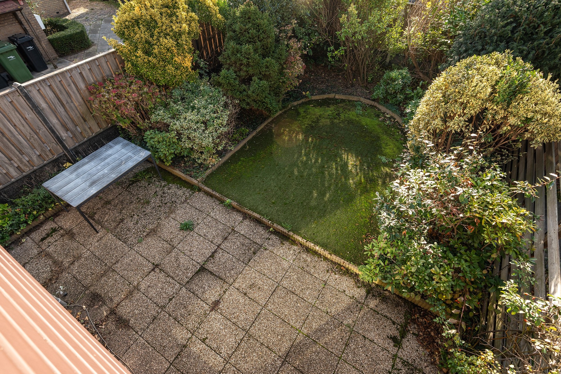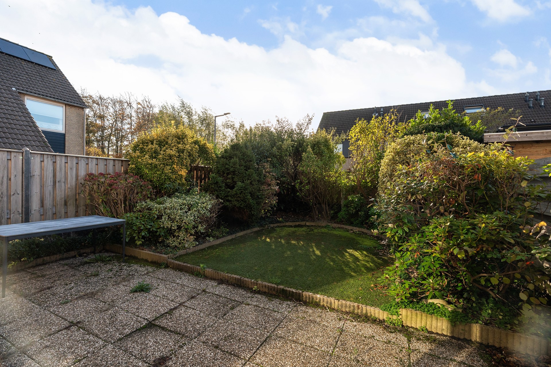 Zonnige tuin op het zuiden Het buitenleven wordt in deze woning minstens zo aantrekkelijk als het binnen. De flinke achtertuin, gunstig gelegen op het zuiden, zit vol volwassen beplanting. Aan de zijkant van het huis loopt het perceel door, met een ruime poort, veel vaste planten en zelfs een praktisch schuurtje – ideaal voor tuinspullen of fietsen.