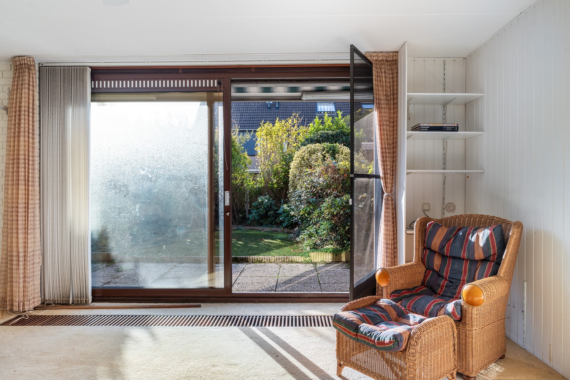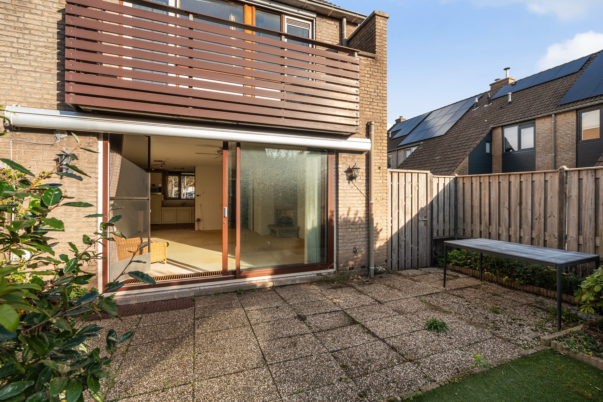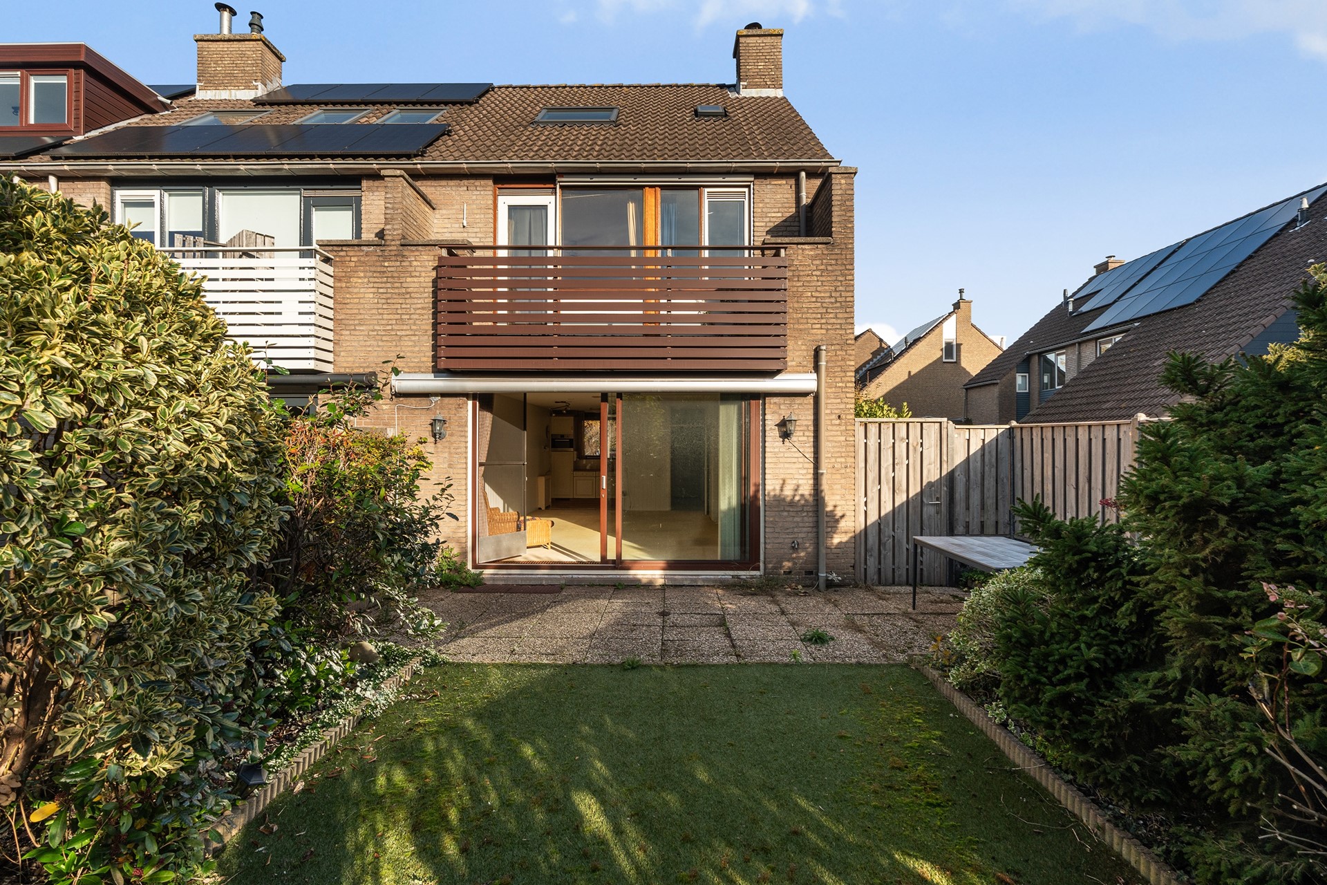 Zonnige tuin op het zuiden Het buitenleven wordt in deze woning minstens zo aantrekkelijk als het binnen. De flinke achtertuin, gunstig gelegen op het zuiden, zit vol volwassen beplanting. Aan de zijkant van het huis loopt het perceel door, met een ruime poort, veel vaste planten en zelfs een praktisch schuurtje – ideaal voor tuinspullen of fietsen.