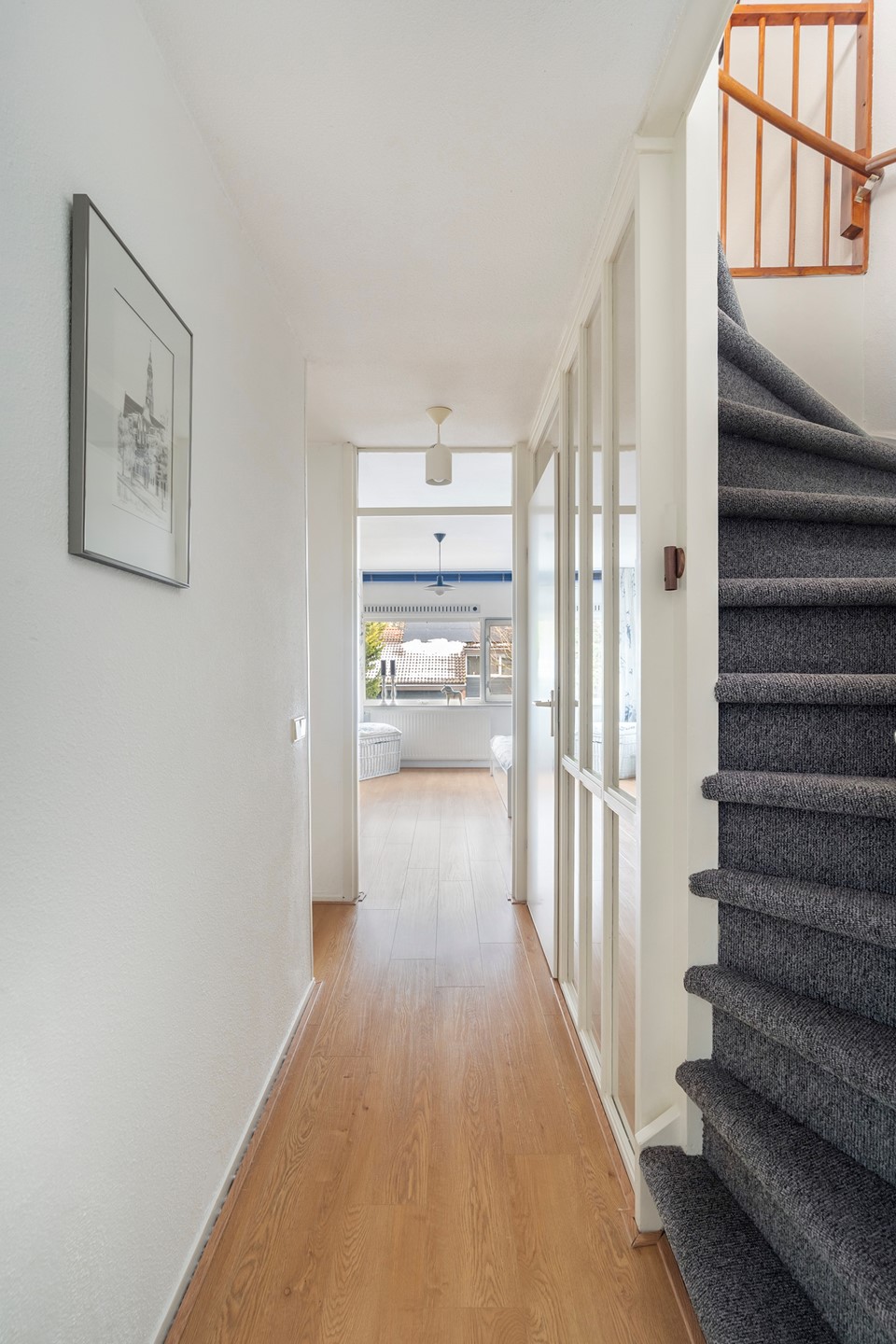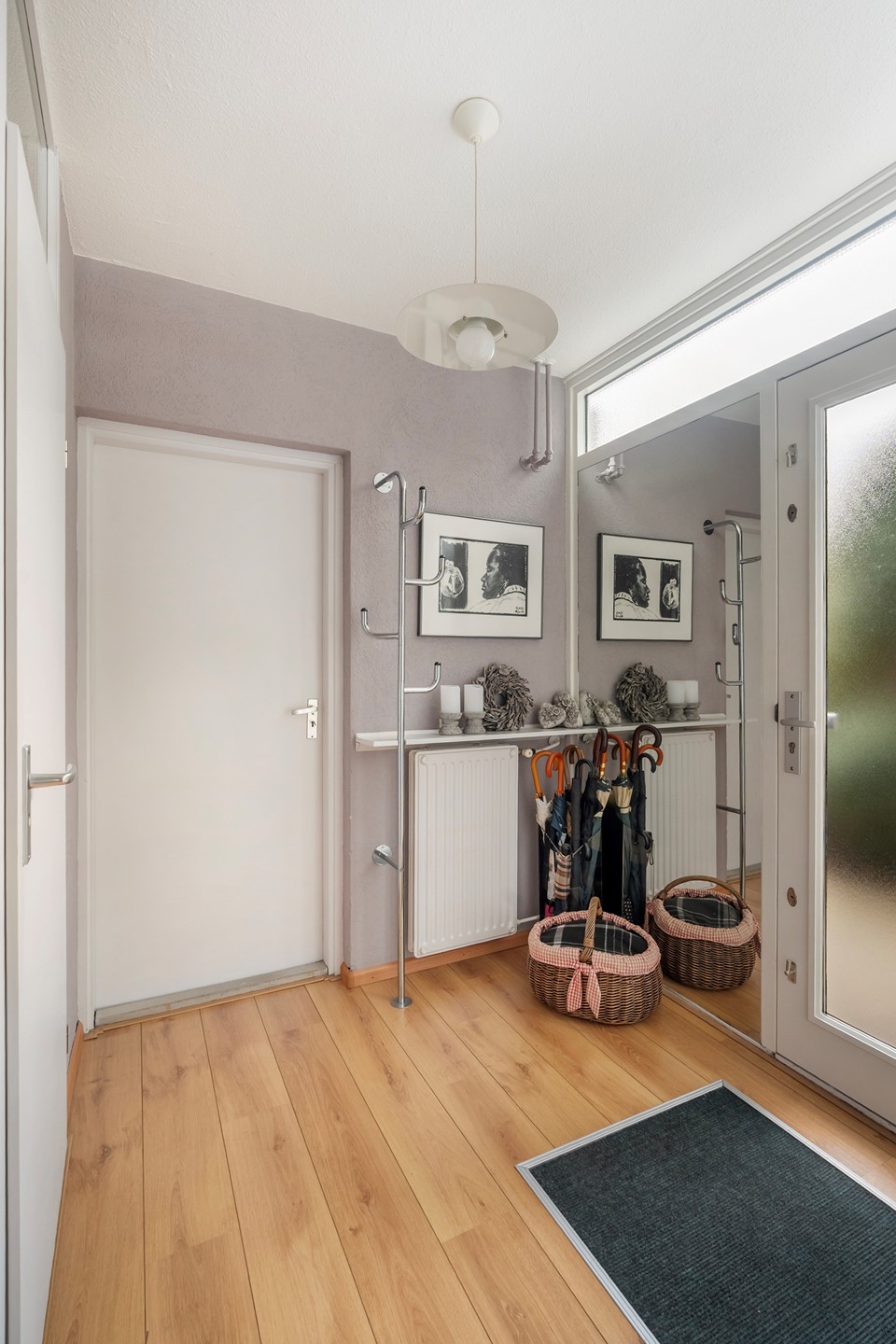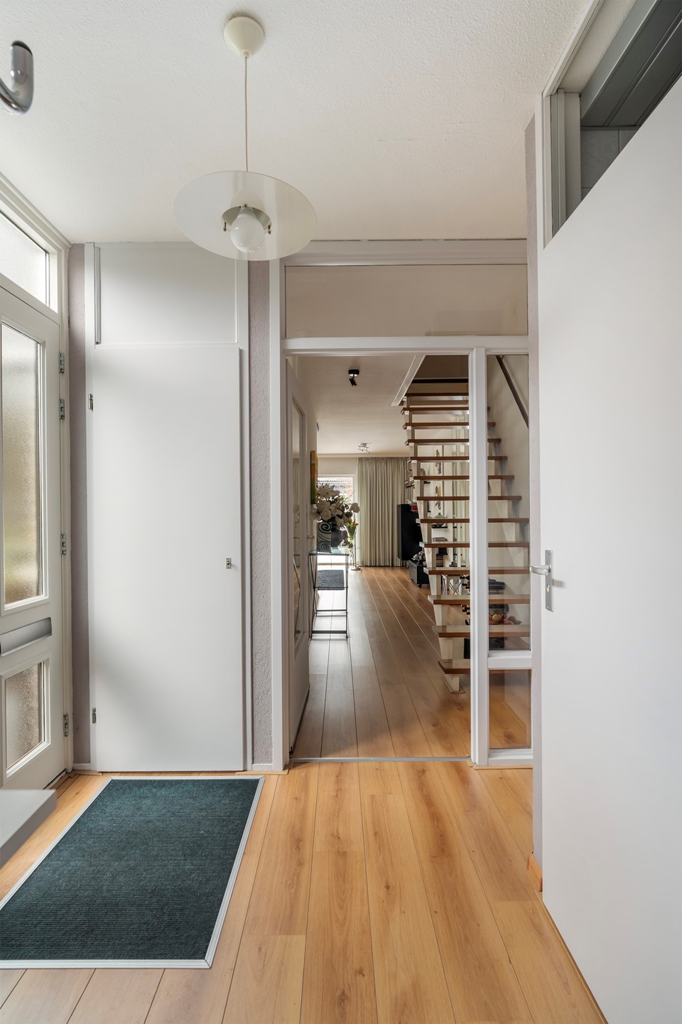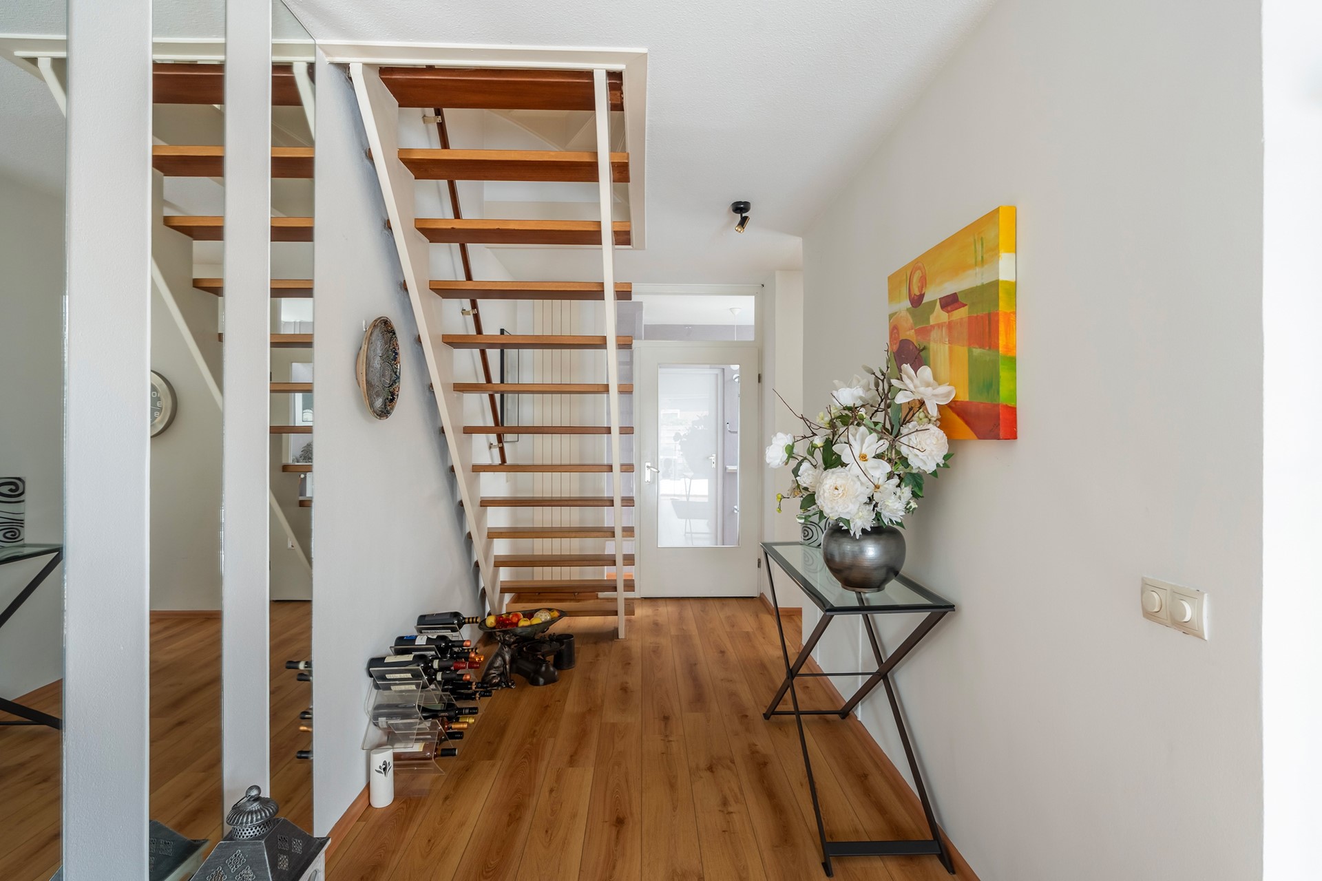 Groene entree met privacy De woning verwelkomt je met een royale voortuin, fraai aangelegd met vaste beplanting die zorgt voor een groene, rustige uitstraling en veel privacy. Via het lange tuinpad bereik je de voordeur. Binnenkomst is in een prettige, lichte hal met garderoberuimte, de toiletruimte en toegang tot de verschillende vertrekken.
