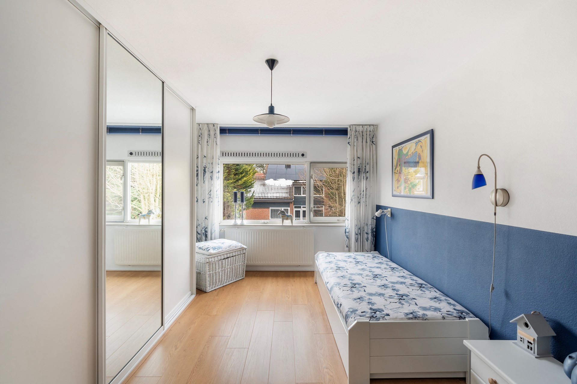 Verrassend ruime tweede verdieping De tweede verdieping is verrassend ruim en wordt gekenmerkt door het sfeervolle, aflopende schuindak. Deze verdieping leent zich perfect voor een royale kinderkamer, speelruimte of comfortabele thuiswerkplek.