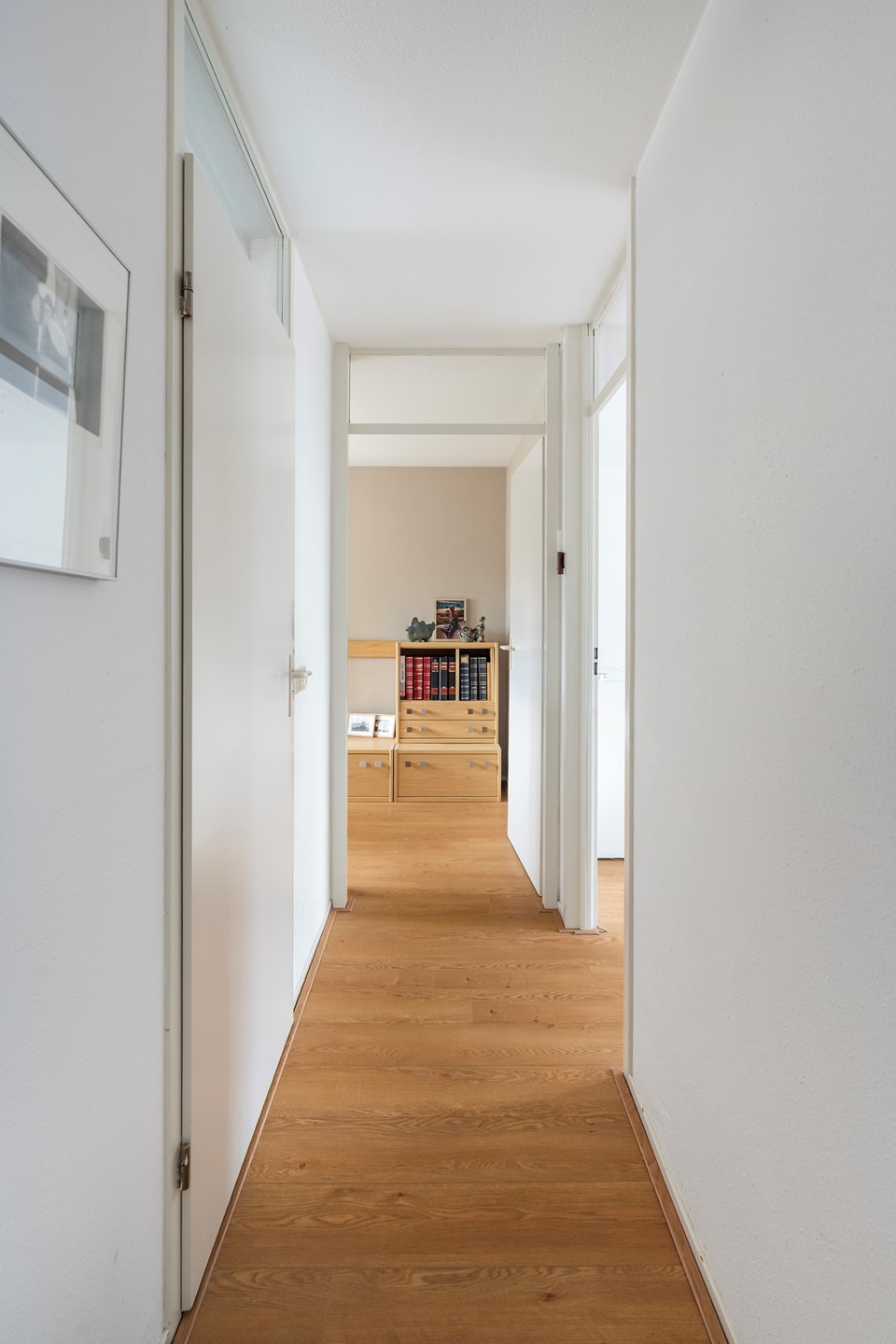 Riante living met veel daglicht. De begane grond is verrassend ruim en praktisch ingedeeld. De woonkamer bevindt zich aan de tuinzijde en biedt volop ruimte voor een royale zithoek – perfect voor gezellige avonden met het gezin of het ontvangen van gasten. Grote raampartijen zorgen hier voor veel daglicht en een fijn zicht op de achtertuin.