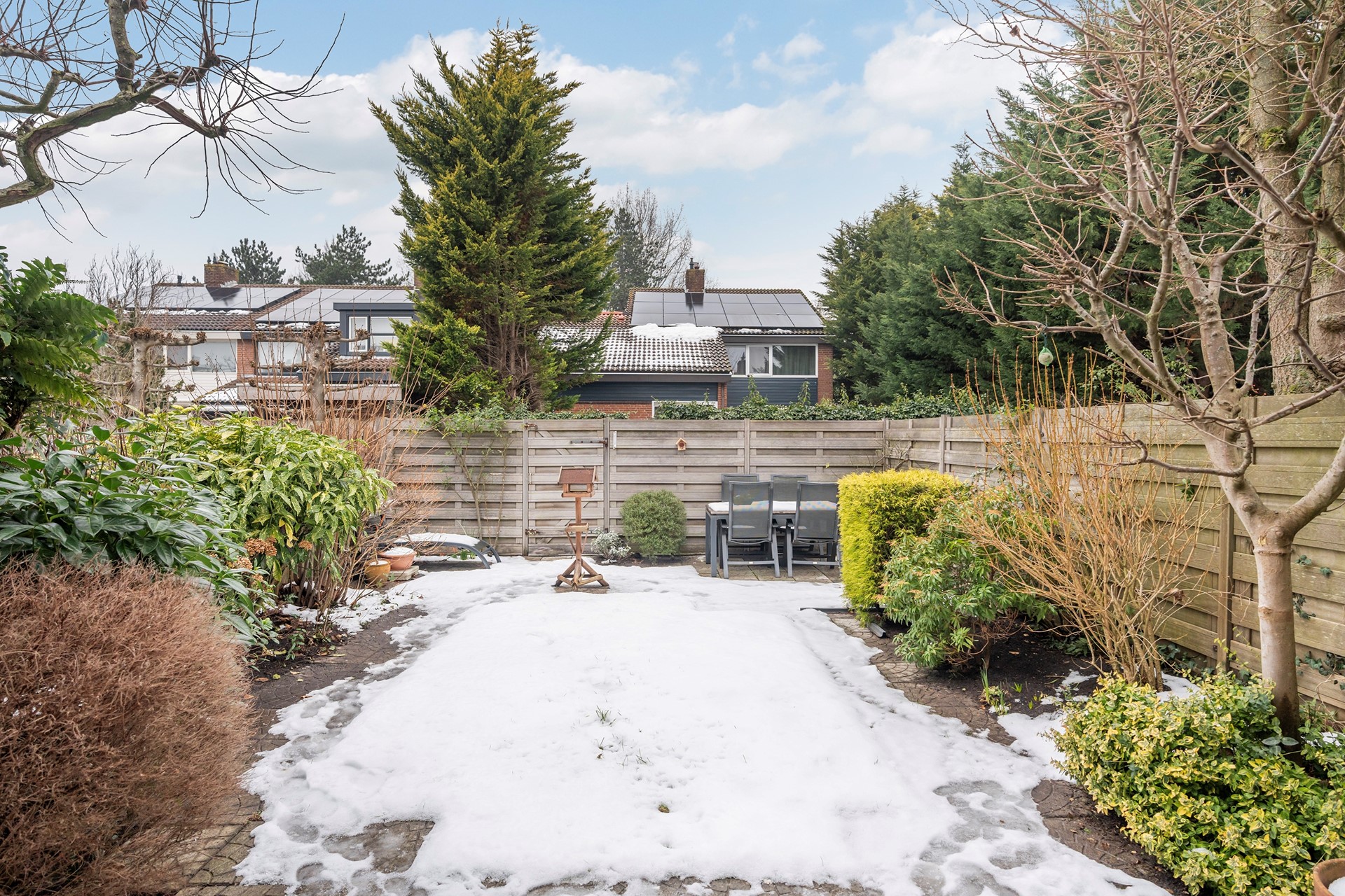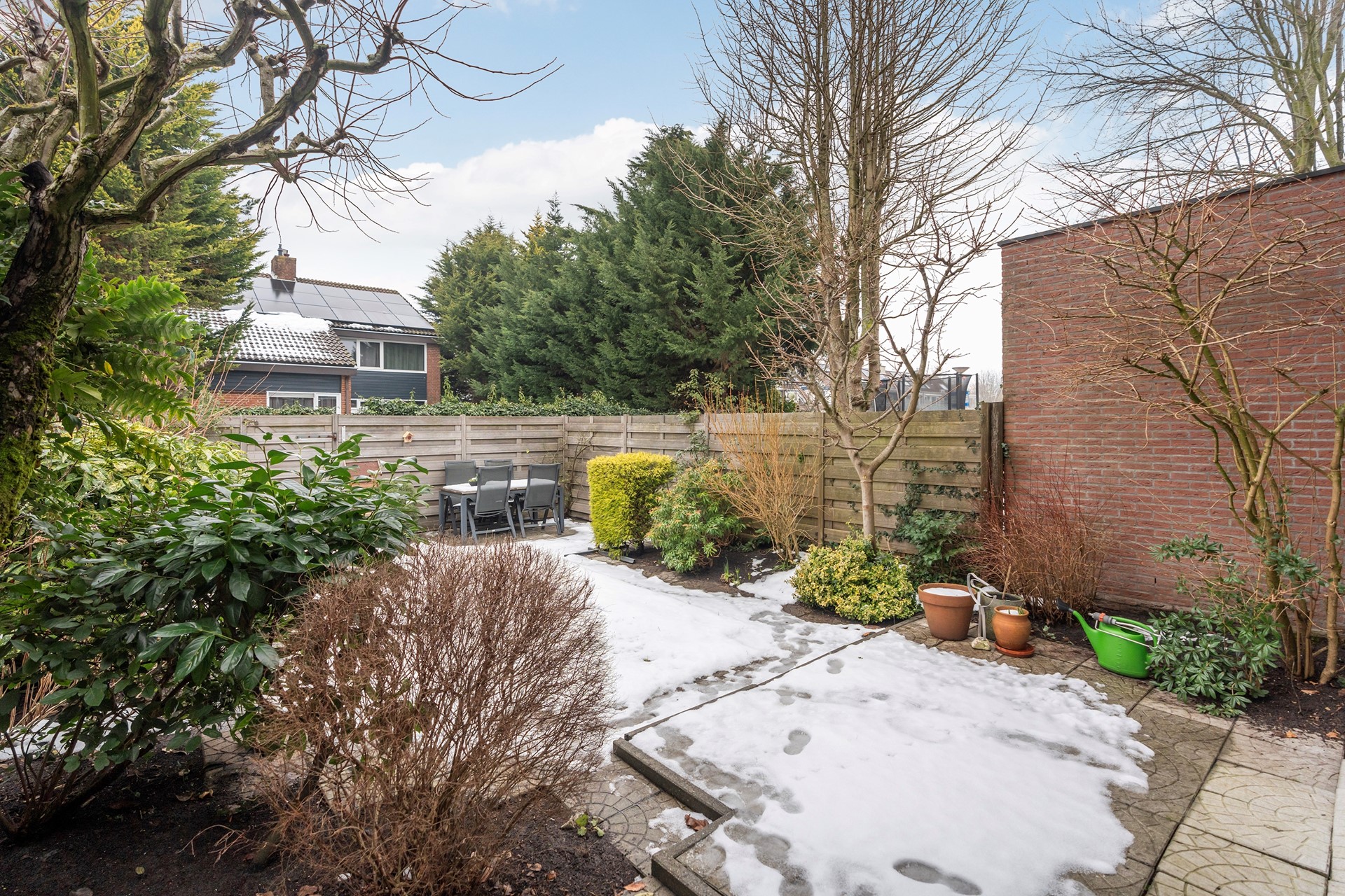 Zonnige en groene achtertuin De achtertuin is circa 70 m² groot, fraai aangelegd met een grote hoeveelheid vaste beplanting en biedt een fijne combinatie van groen en privacy. Dankzij de ligging op het noordwesten kun je hier tot in de avond van de zon genieten. De tuin beschikt bovendien over een praktische achterom, wat ideaal is voor fietsen, tuinspullen of voor de kinderen