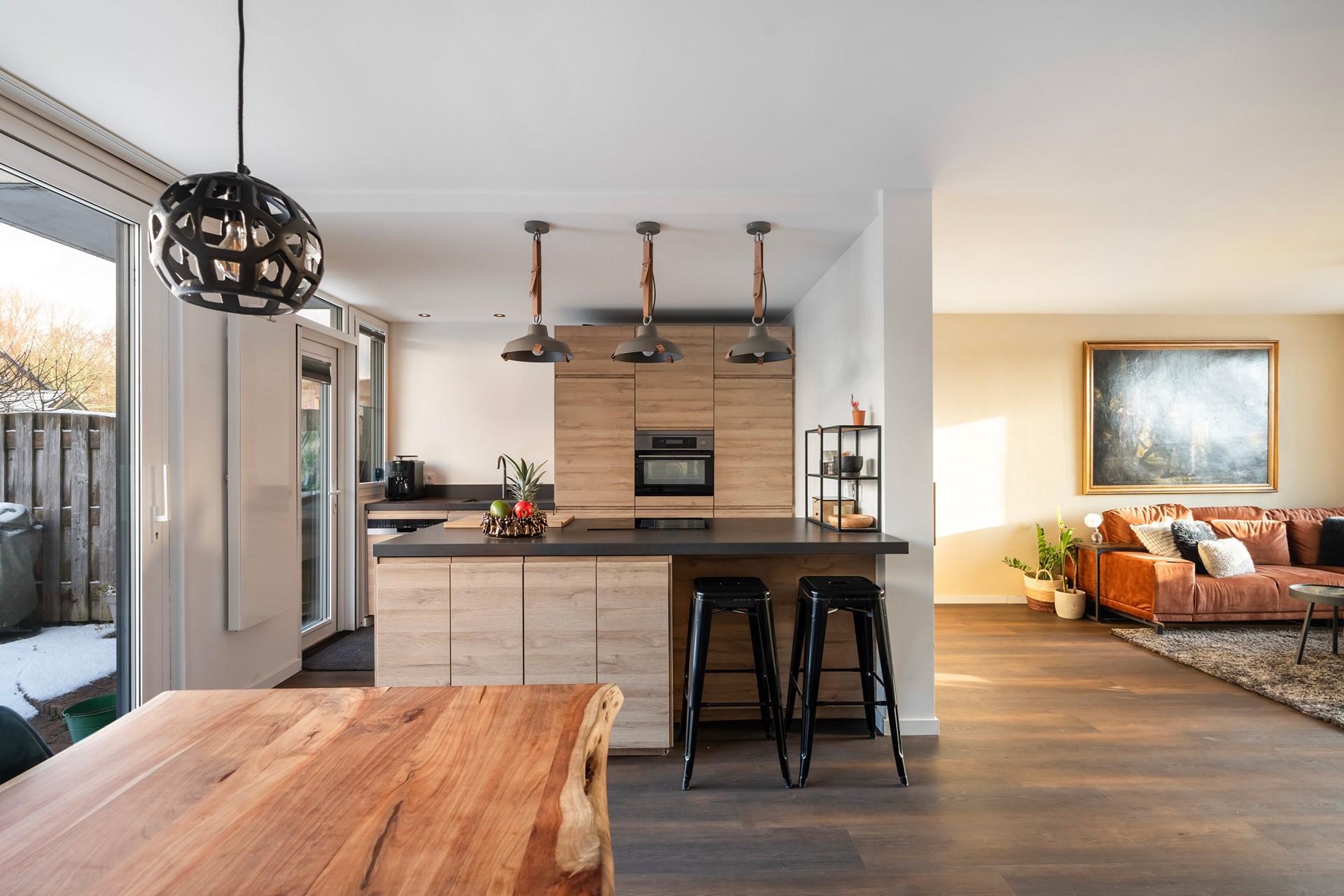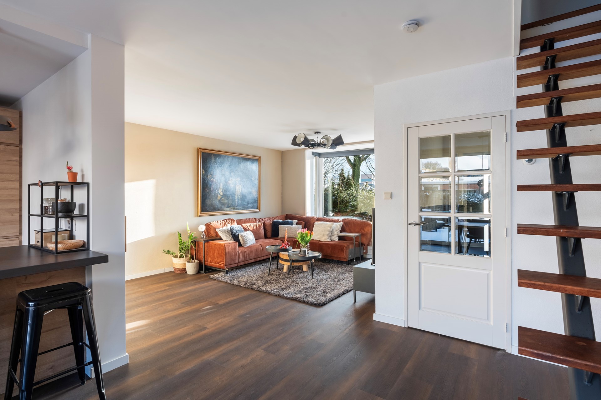 Royale living mét licht, luxe en leefruimte Zodra je je jas hebt opgehangen en de hal achter je laat, ontvouwt zich een woonkamer die indruk maakt door zijn ruimtelijkheid én afwerking. De grote raampartijen aan de achterzijde en de erker aan de voorzijde halen het daglicht royaal binnen – iets wat meteen een gevoel van thuiskomen oproept. In 2024 zijn alle ramen, kozijnen, schuifpui en deuren volledig vervangen met triple HR+++ glas, wat naast een lage energierekening ook zorgt voor een geluidsarme omgeving.