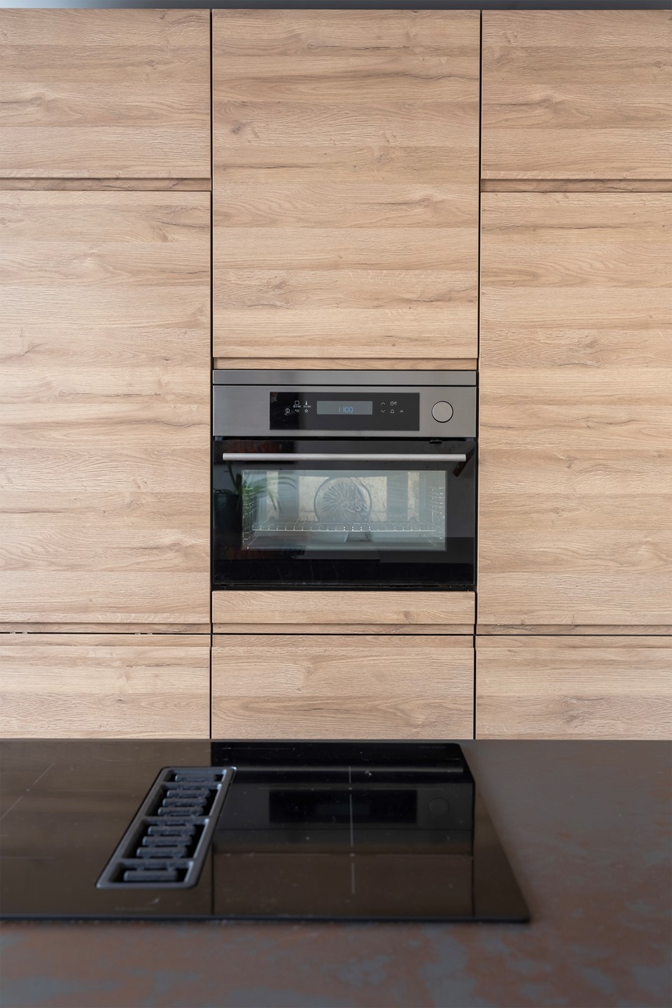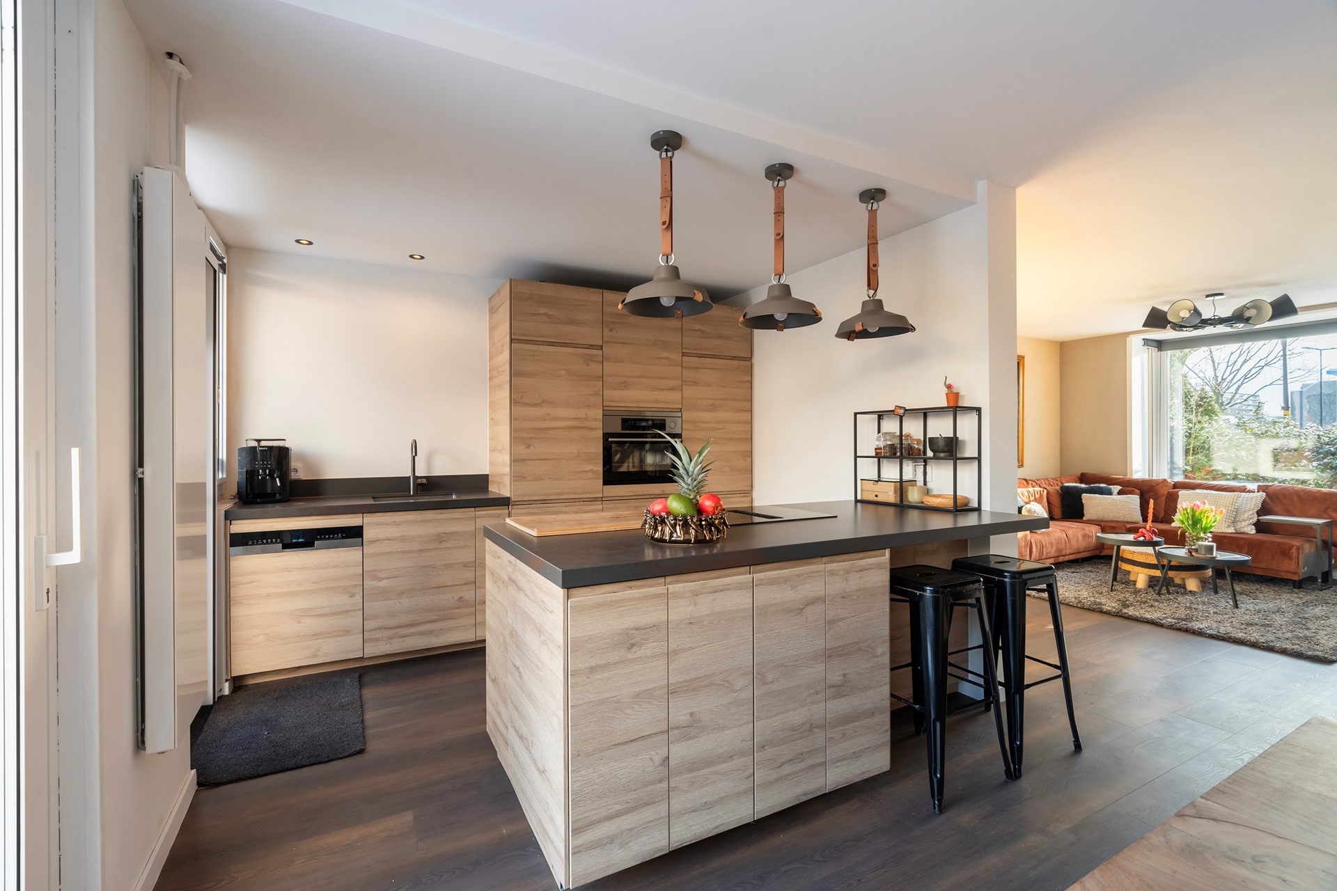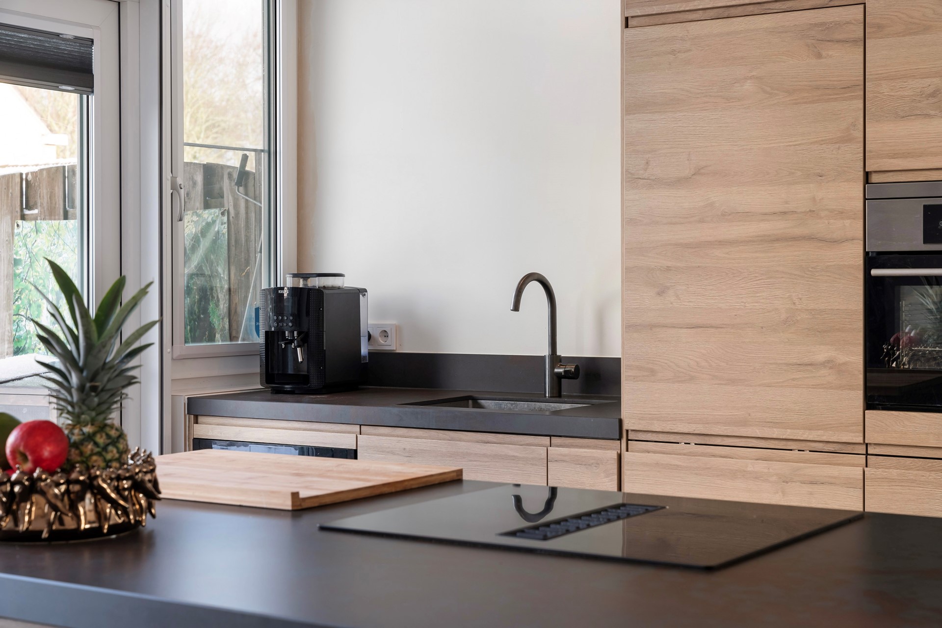 Keuken: het hart van de huiskamer Of je nu een hobbykok bent of gewoon graag samenkomt met vrienden en familie, de recent geplaatste keuken zal je iedere dag verrassen. Het fraai vormgegeven kookeiland is een echte eyecatcher: uitnodigend, praktisch én stijlvol. Dankzij het innovatieve Bora-afzuigsysteem heb je geen storende afzuigkap—alles is slim geïntegreerd in het werkblad. Uiteraard ontbreekt het niet aan luxe inbouwapparatuur. Terwijl jij roert in de pannen, kletsen je gasten gezellig bij aan het barretje. Dit is dé plek waar je samenkomt, lacht en geniet.