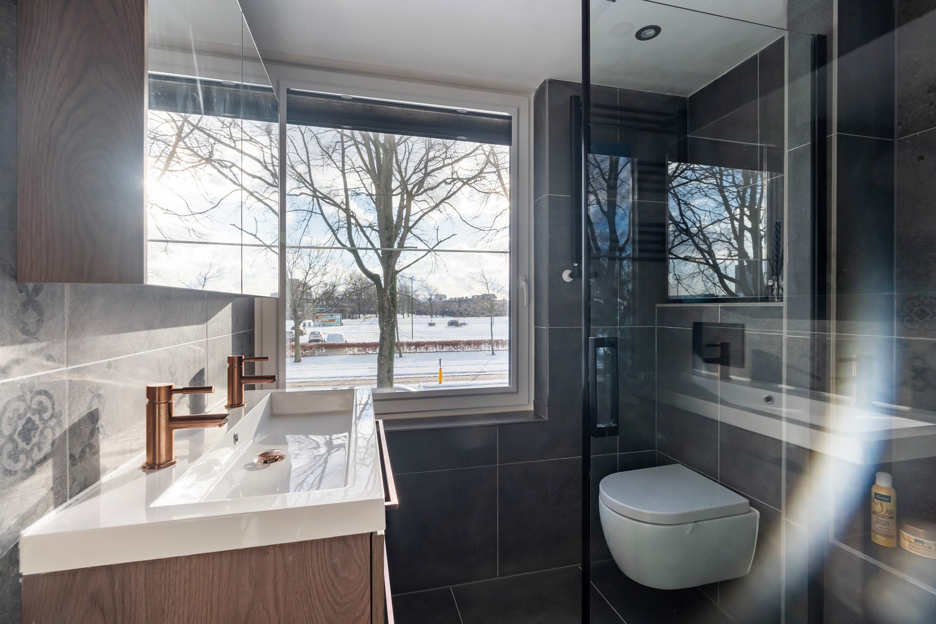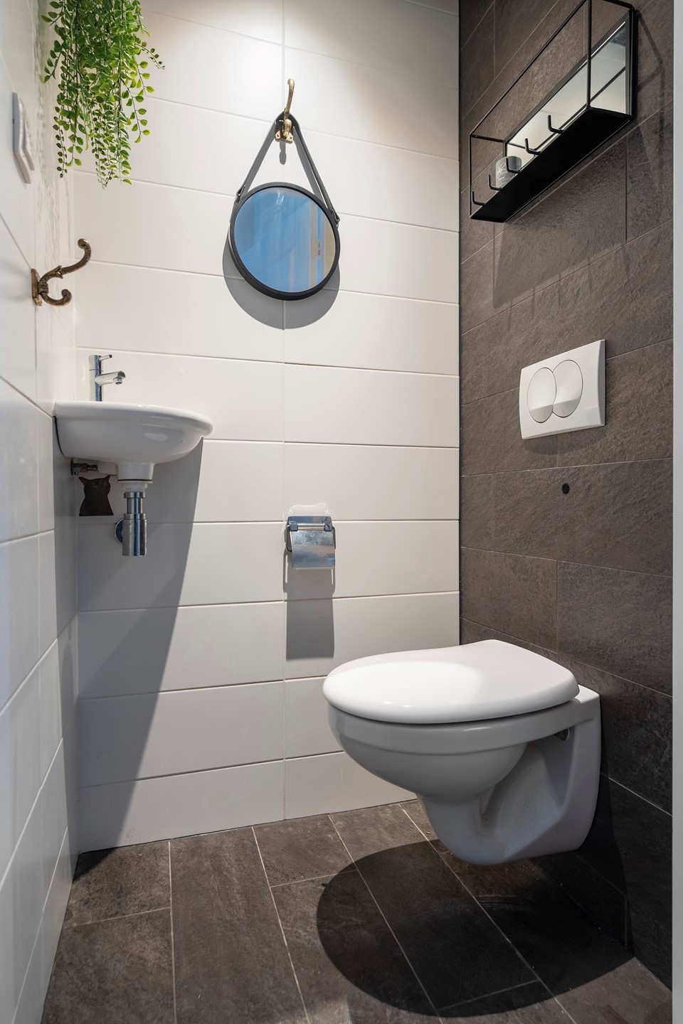 Badkamer: fris en luxe op de eerste verdieping De badkamer heeft een flinke upgrade gehad en is uitgerust met alle wensbare gemakken: een ruime inloopdouche met regendouche, dubbele wastafel met moderne spiegels, een zwevend toilet en een stijlvolle handdoekradiator. De keuze voor hoogwaardige materialen geeft het geheel een rustgevende hotel-uitstraling. Hier begin je de dag fris en sluit je hem ontspannen af.