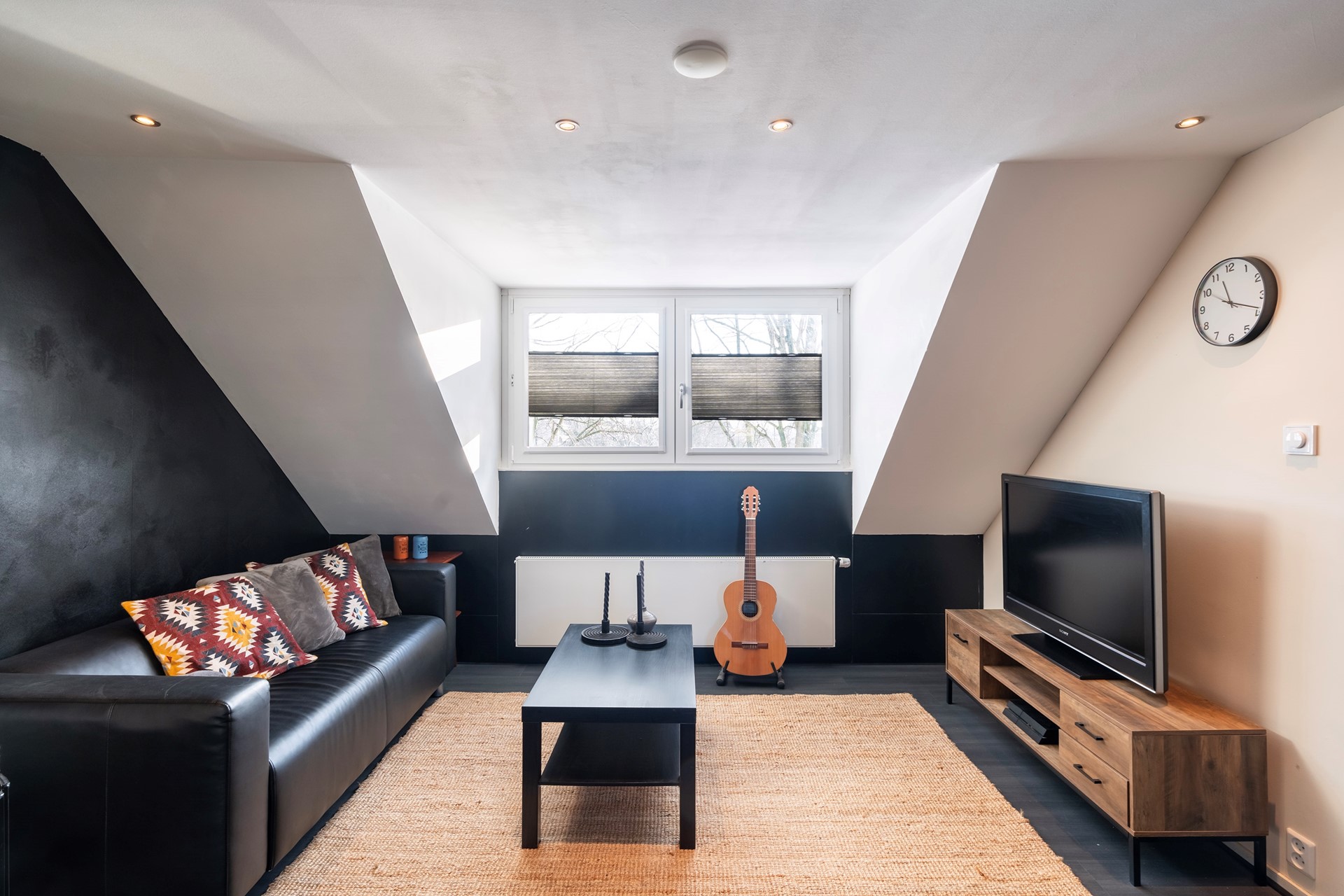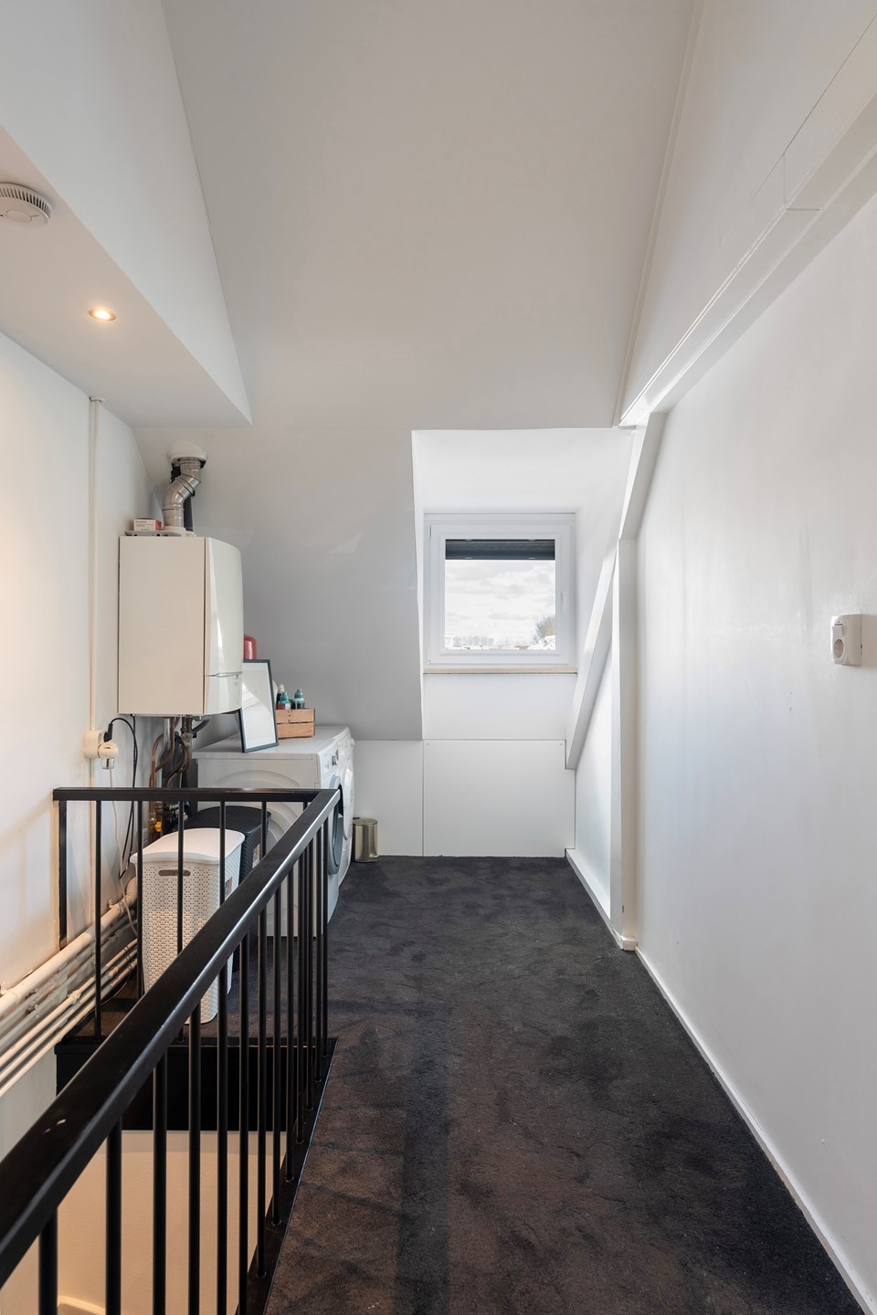 Op de tweede verdieping is nu een game- en sportkamer, maar hier kun je eenvoudig twee extra (slaap)kamers realiseren. Op de voorzolder vind je de CV-ketel en aansluitingen voor wasmachine en droger.