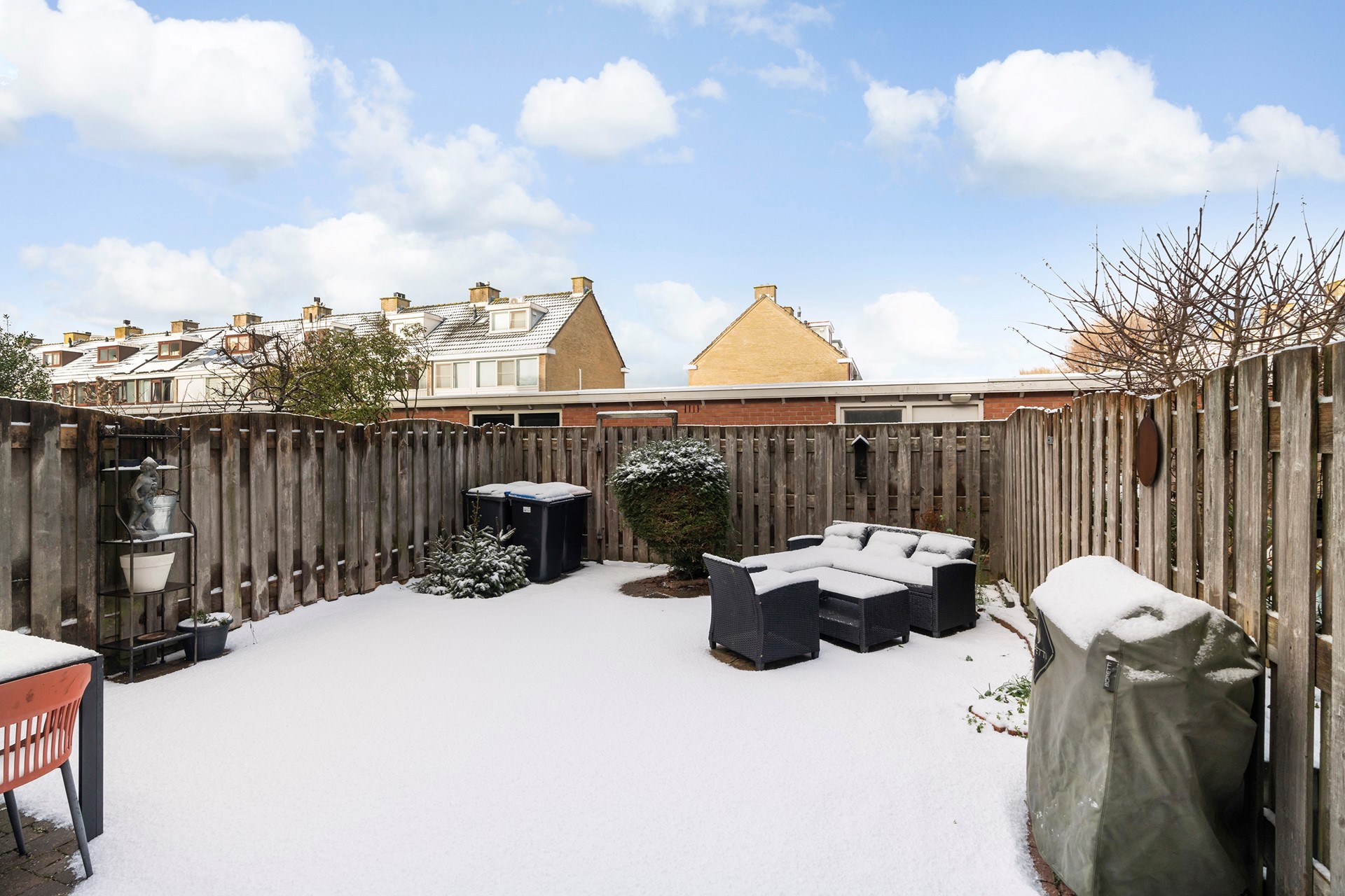 De diepe achtertuin van maar liefst 77 m² is een plek waar je het hele jaar door van kunt genieten. Dankzij de gunstige ligging heb je volop zon, maar ook ruimte voor een gezellige loungehoek, een speelplek voor kinderen. Achter de poort ( met recht van overpad) vind je een praktische grote berging van 11 m² voor het stallen van de fietsen en het opbergen van tuingereedschap, én een achterom.