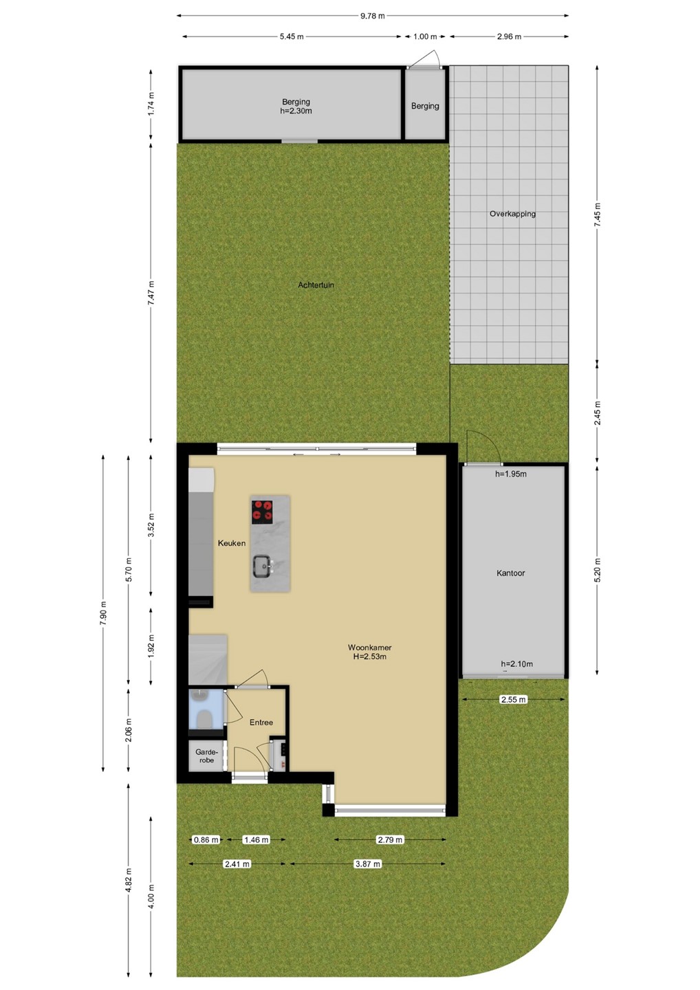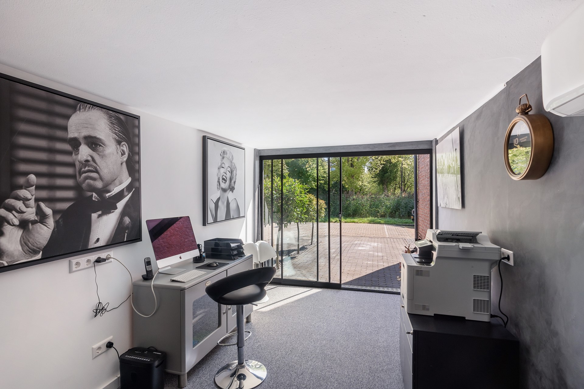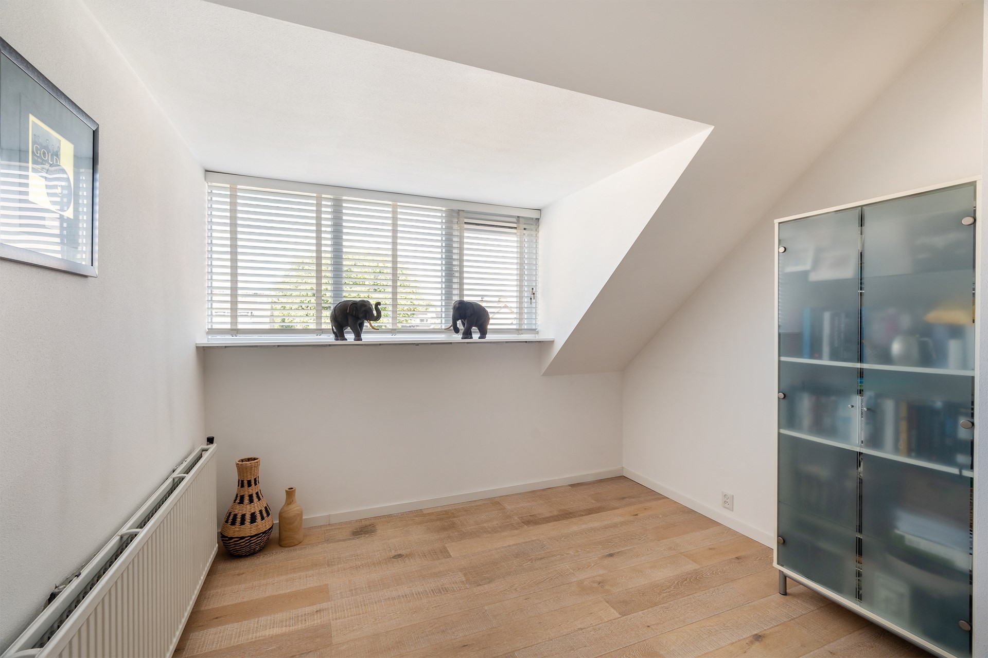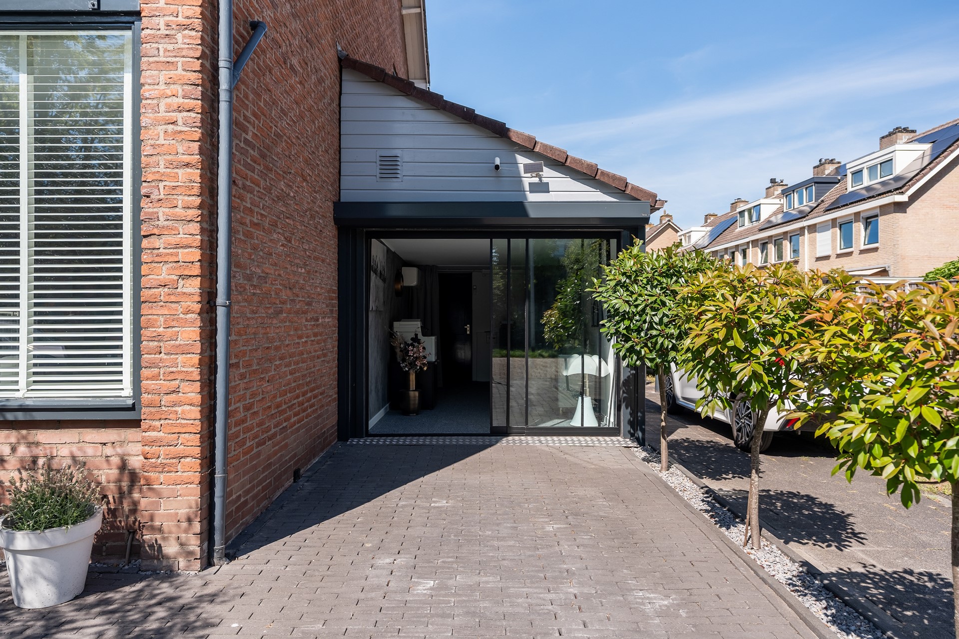 Veelzijdige garage en bergingen Niet alleen binnen, maar ook rondom het huis is overal aan gedacht. De garage aan de voorzijde doet momenteel dienst als een modern kantoor, voorzien van een aluminium pui met elektrische garagedeur. Deze slimme indeling maakt werken aan huis comfortabel, maar met een kleine aanpassing gebruik je deze ruimte eenvoudig weer als garage. Boven de garage is een extra opbergzolder voor de seizoensspullen. Achter in de tuin staat nog een berging en via de buitenzijde heb je toegang tot een compacte, praktische (fietsen)berging.