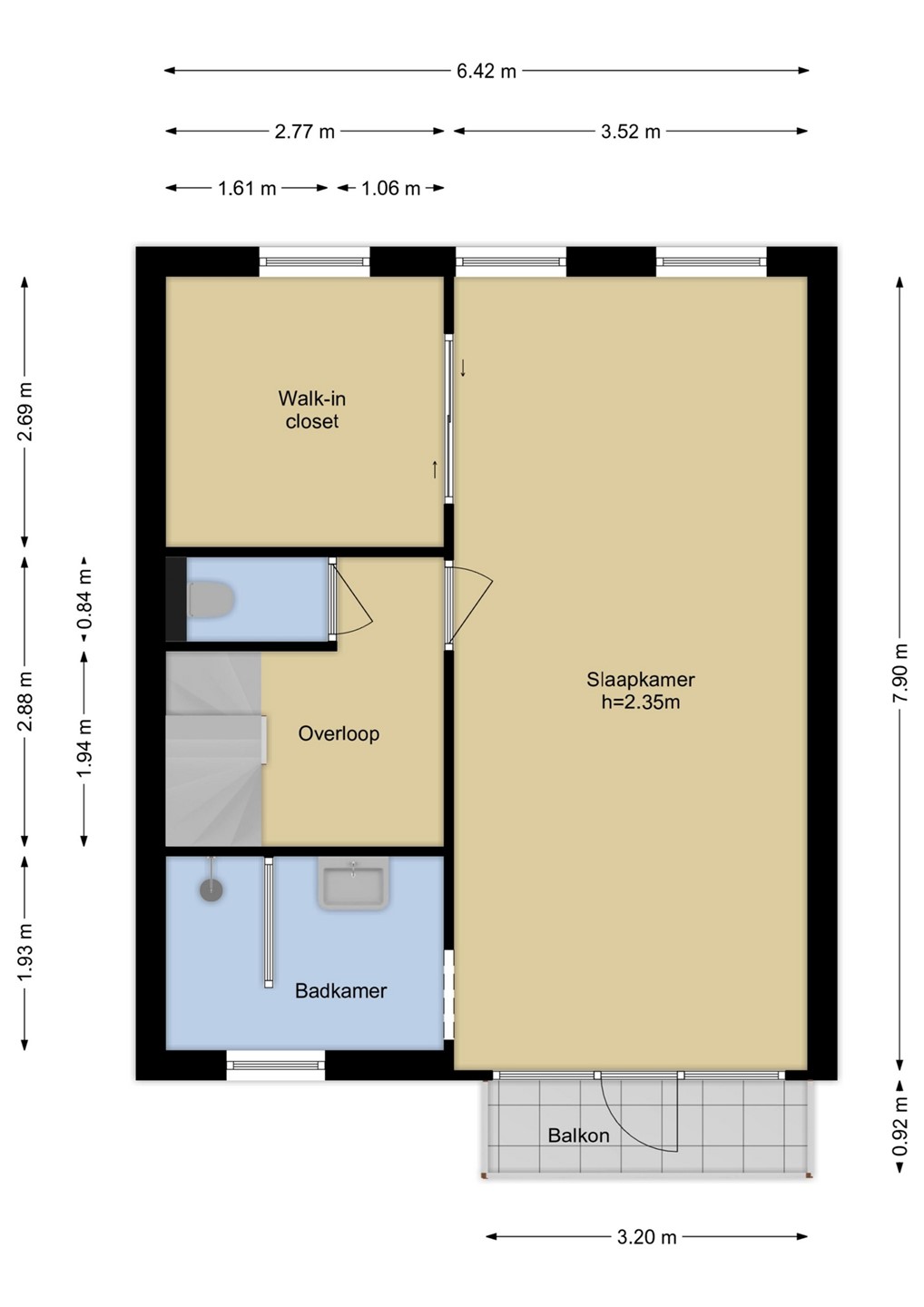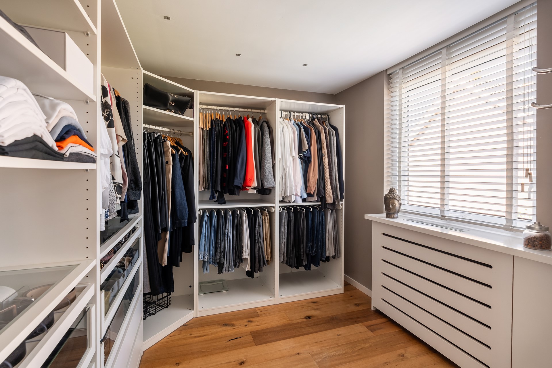 Achter in de slaapkamer bevindt zich een royale walk-in closet; dé droom van iedere kledingliefhebber! En alsof het niet op kan, loop je vanaf de slaapkamer zo het heerlijke balkon op: perfect voor een kop koffie in de ochtend of een glas wijn bij zonsondergang. De houten vloer zorgt voor extra allure op deze verdieping. Op de overloop bevindt zich het tweede toilet.
