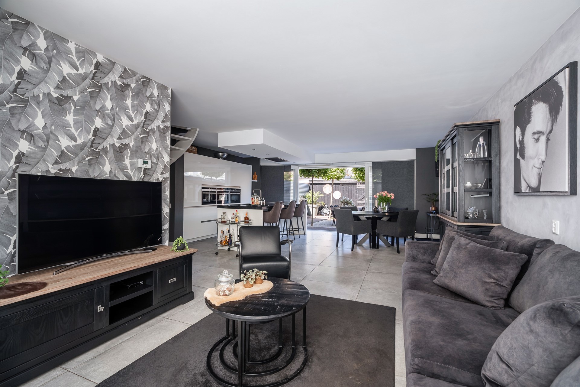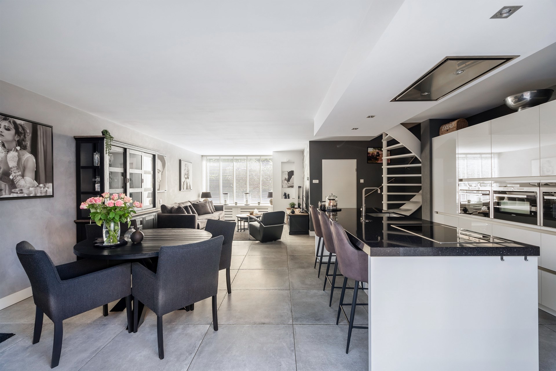 Eenmaal binnen in de lichte hal tref je alles wat je mag verwachten: plek voor jassen, een nette meterkast, een fris afgewerkte toiletruimte en uiteraard de deur naar de woonkamer – waar het échte gevoel van thuiskomen begint. De ruime en lichte living heeft een chique uitstraling dankzij de neutrale tinten en hoogwaardige afwerking. Aan de voorzijde is een royale zithoek gecreëerd, perfect voor lange avonden met familie of vrienden. Dankzij grote raampartijen geniet je bovendien van mooi lichtinval, waardoor elke dag in deze ruimte uitnodigend aanvoelt.