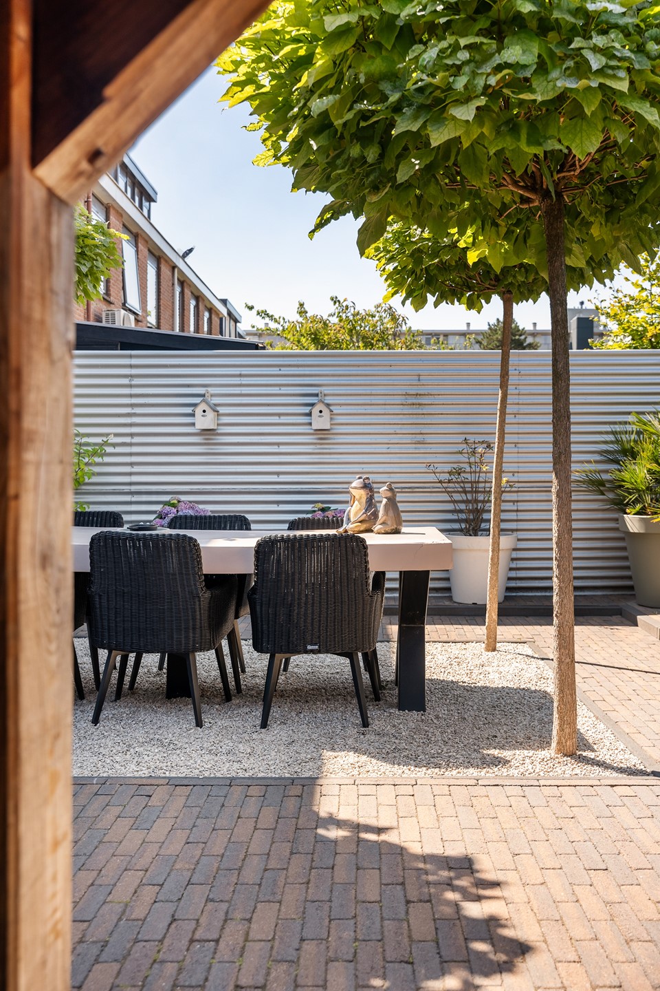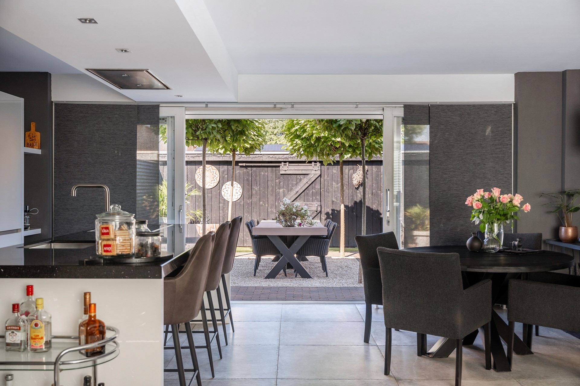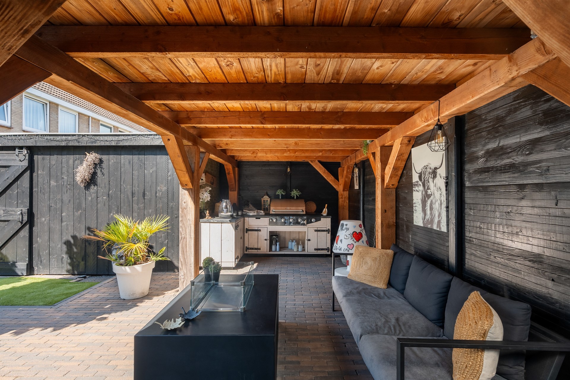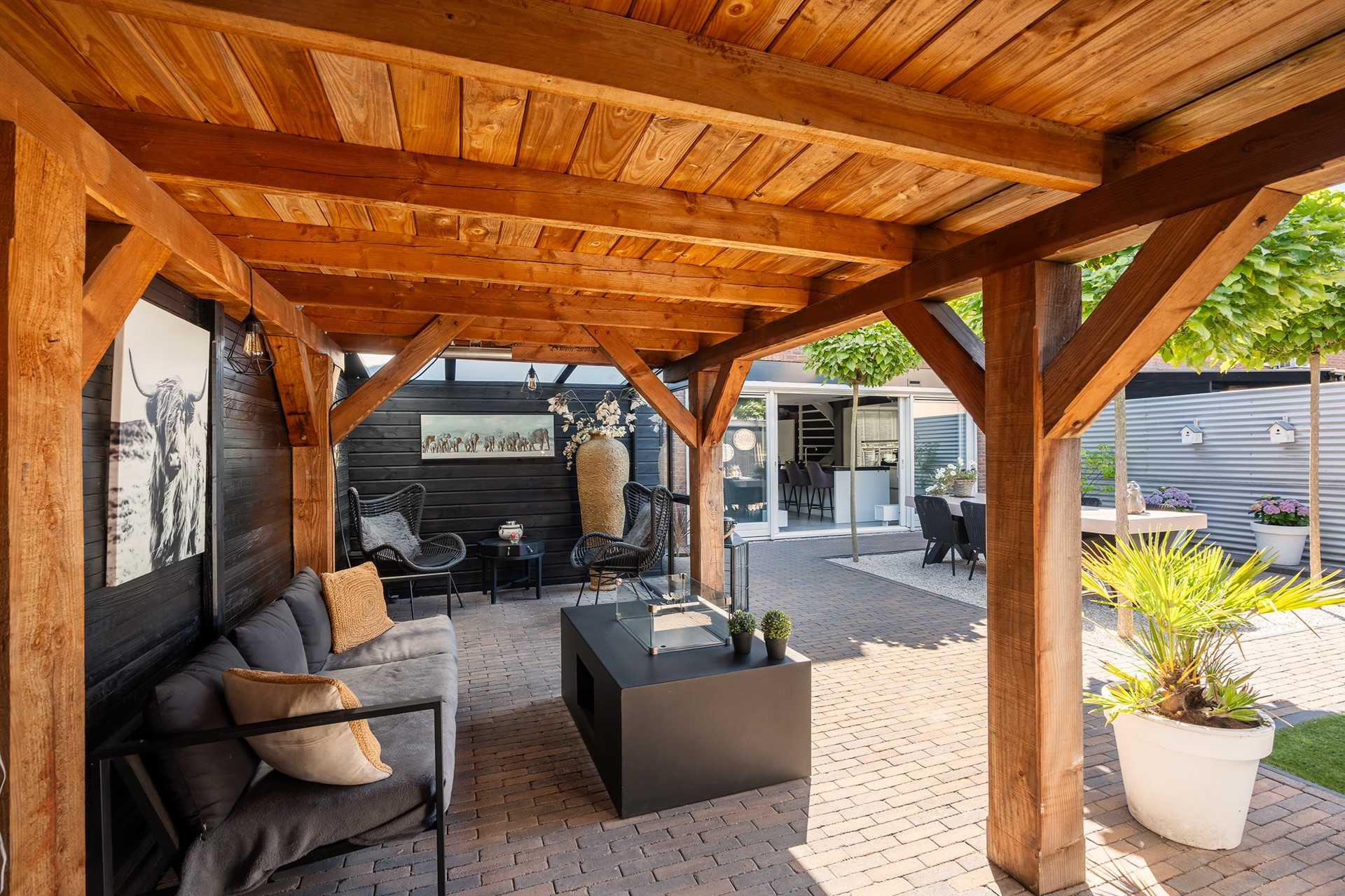 Buitenleven op z’n best: tuin met overkapping en buitenkeuken En dan, ja hoor... De tuin – wat een parel! Deze achtertuin is knus gesitueerd voor optimale privacy en voorzien van alle denkbare luxe. Of je nu met een groot gezelschap wilt dineren onder de gezellige overkapping, uitgebreid wilt barbecueën of gewoon lekker wilt genieten van een zwoele avond, hier kan het allemaal. Aan tafel met vrienden, de buitenkeuken paraat en voor de lange zomeravonden biedt de overkapping uitkomst. Eigenlijk wil je nergens anders meer zijn! De voortuin is trouwens minstens zo fraai, perfect onderhouden en speels aangelegd.