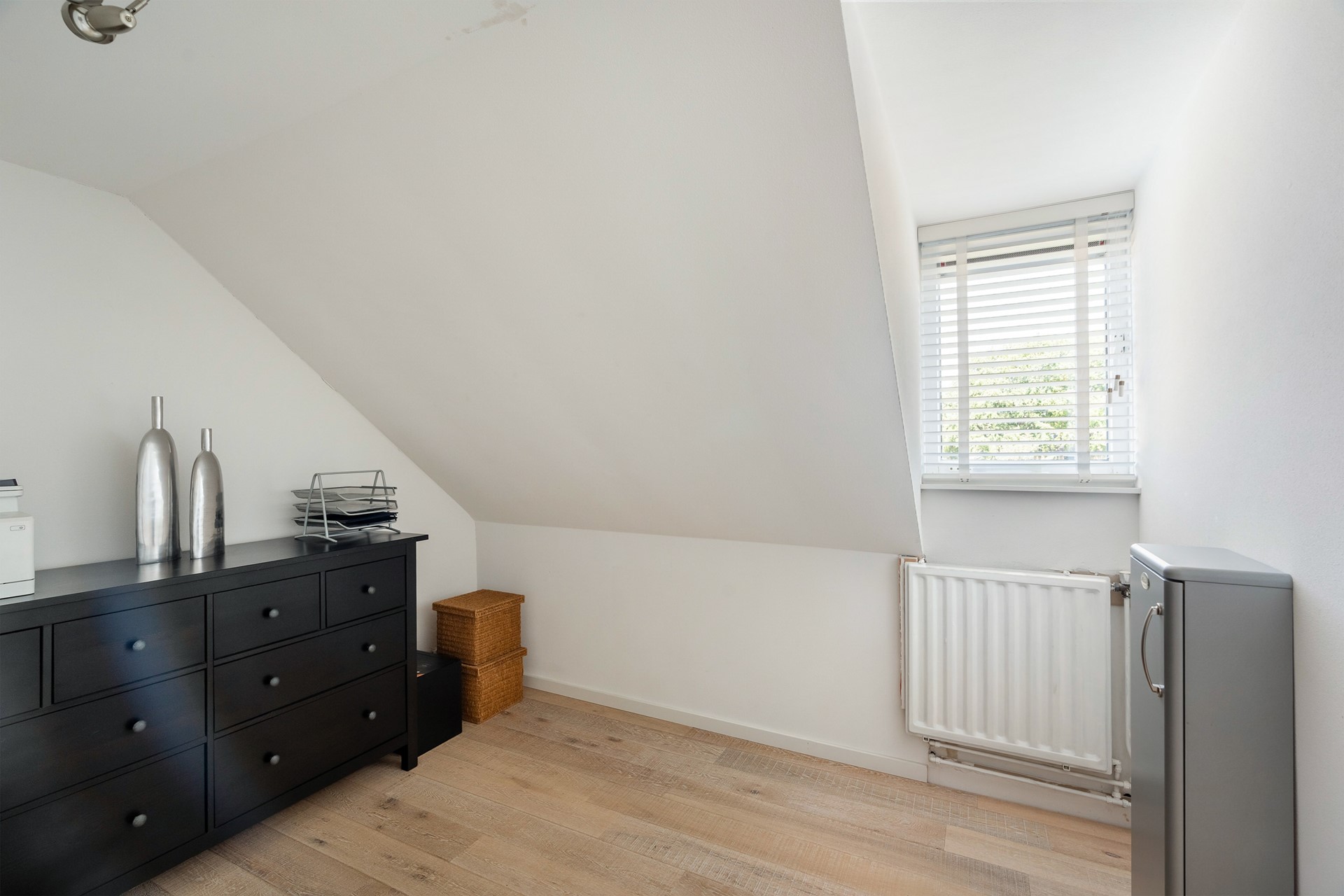 Tweede verdieping – Meer ruimte dan je verwacht Ook de tweede verdieping verrast met zijn mogelijkheden. Hier zijn eenvoudig één of zelfs twee slaapkamers te realiseren, ideaal voor (opgroeiende) kinderen, een thuiskantoor of logeerruimte. Opbergruimte is er volop: achter de kast kun je al jouw spullen netjes uit het zicht bewaren. Daarnaast zijn wasmachine, droger en cv-ketel slim weggewerkt, zodat alles overzichtelijk blijft en de ruimte optimaal benut wordt.