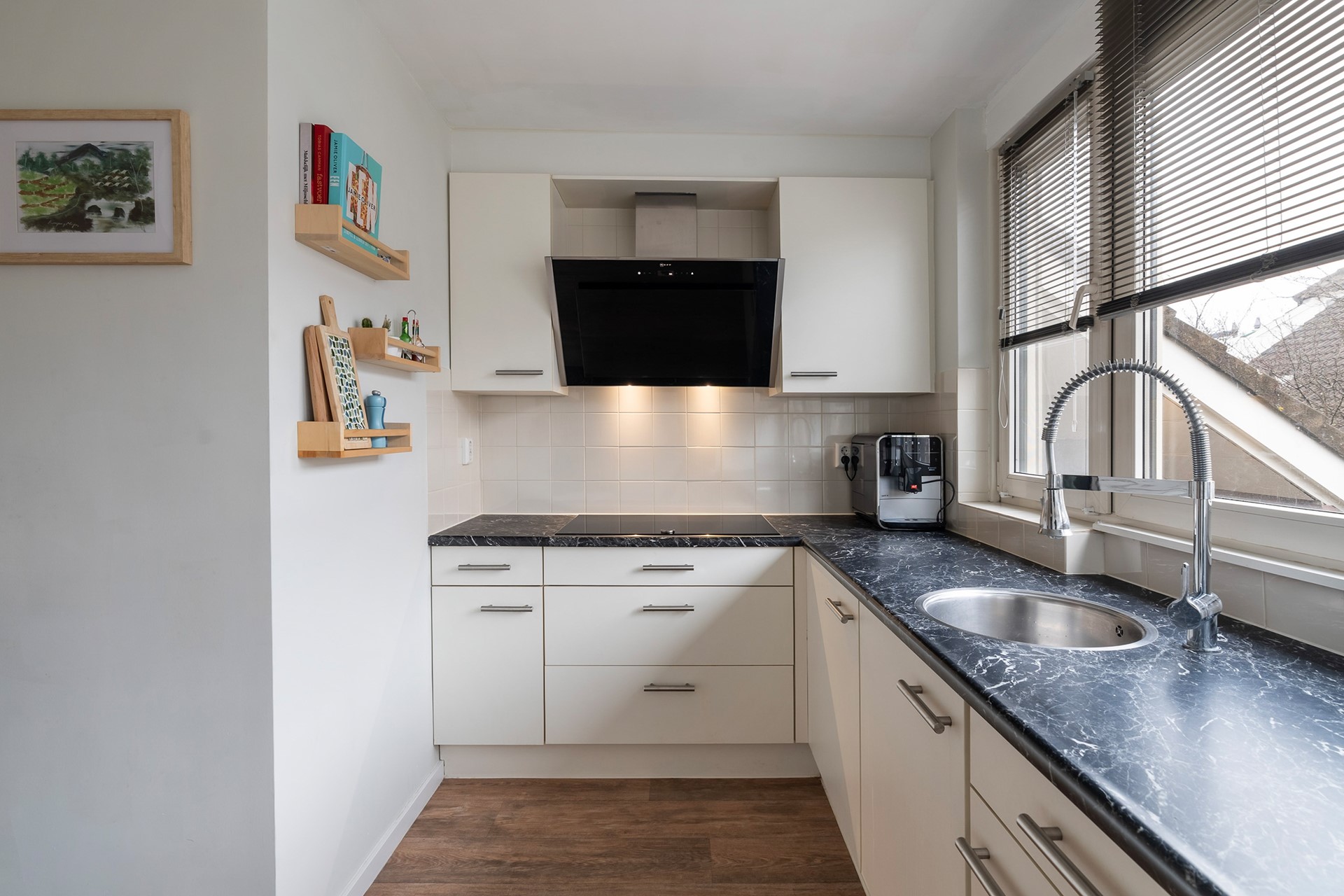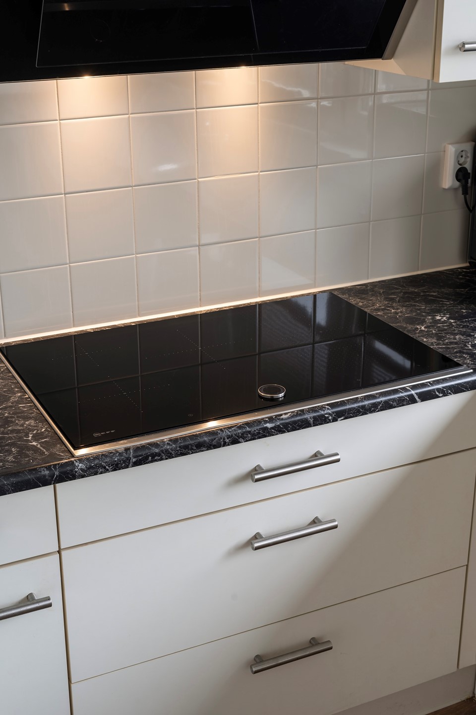 De eyecatcher is de moderne witte keuken met stoere zwarte details, compleet met hoogwaardige inbouwapparatuur (o.a. 5-pits inductie) en een slimme opstelling voor de wasmachine en droger. De volledige woning is voorzien van kunststof kozijnen met HR++ glas en dakisolatie, wat zorgt voor rust en een lage energierekening.