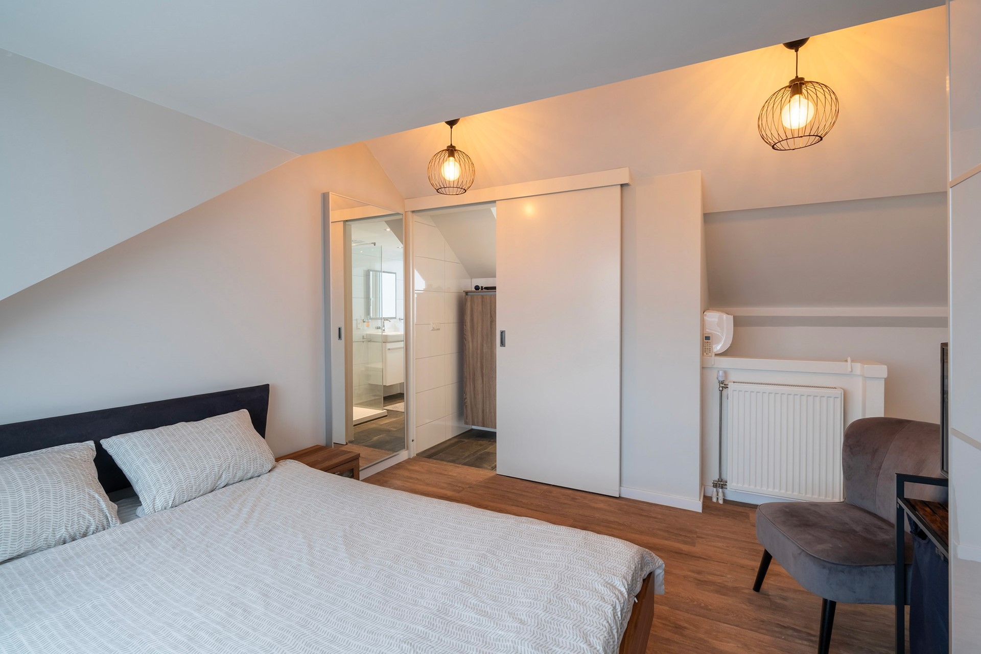 Slaapetage met ‘Wauw-factor De bovenverdieping verrast je aan alle kanten. De riante master-bedroom voelt aan als een suite en is voorzien van eigen airconditioning voor een perfecte nachtrust.