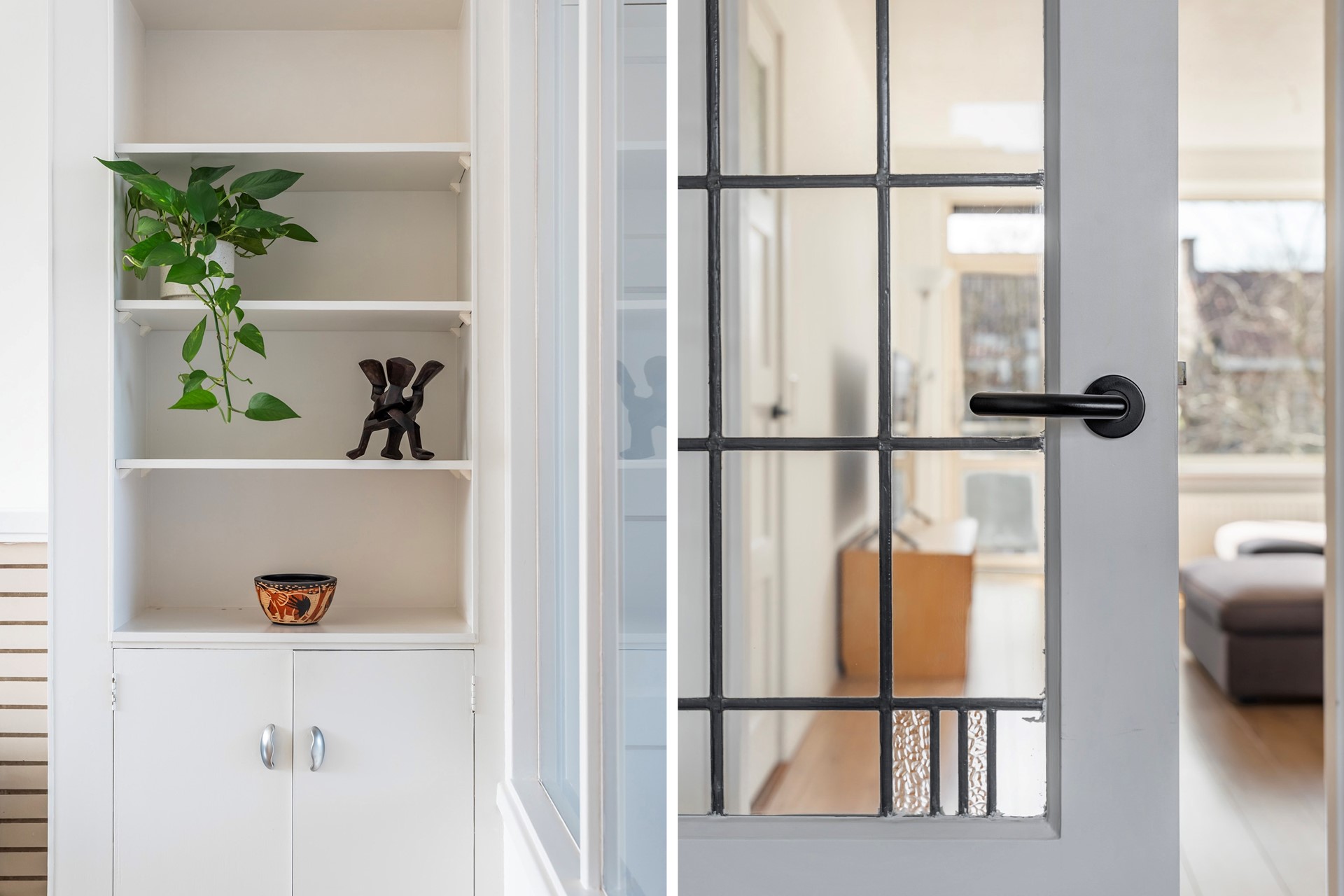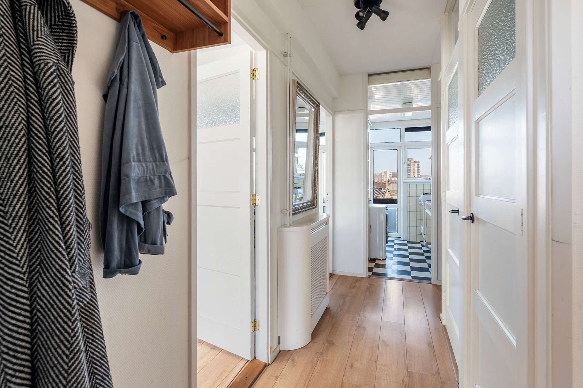 Slapen & Bergzolder: Het appartement beschikt over twee slaapkamers. De huidige bewoners hebben één kamer getransformeerd tot een royale walk-in closet, maar deze is eenvoudig weer als volwaardige slaap- of werkkamer in te richten.