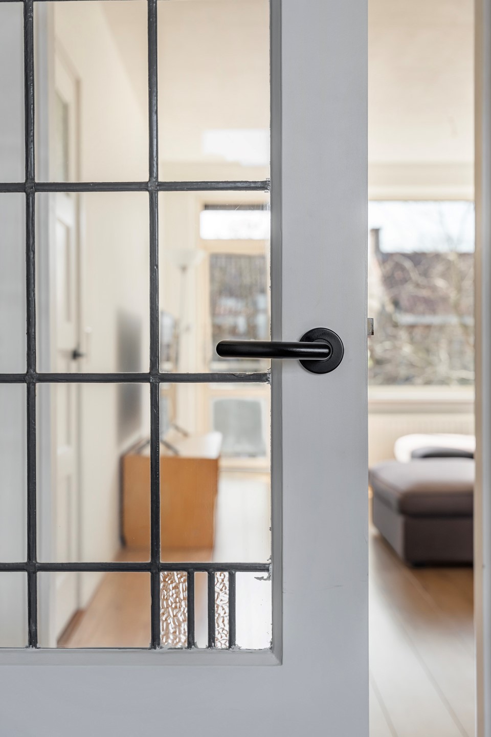 Woonkamer met karakter: Bij binnenkomst in de woonkamer valt direct de klassieke kamer-en-suite verdeling op. De originele raam- en deurpartij tussen de voor- en achterkamer is bewaard gebleven, wat zorgt voor een prachtige lichtinval en een intieme sfeer. De haardkachel in de zithoek is het stralende middelpunt; de perfecte plek voor lange winteravonden.