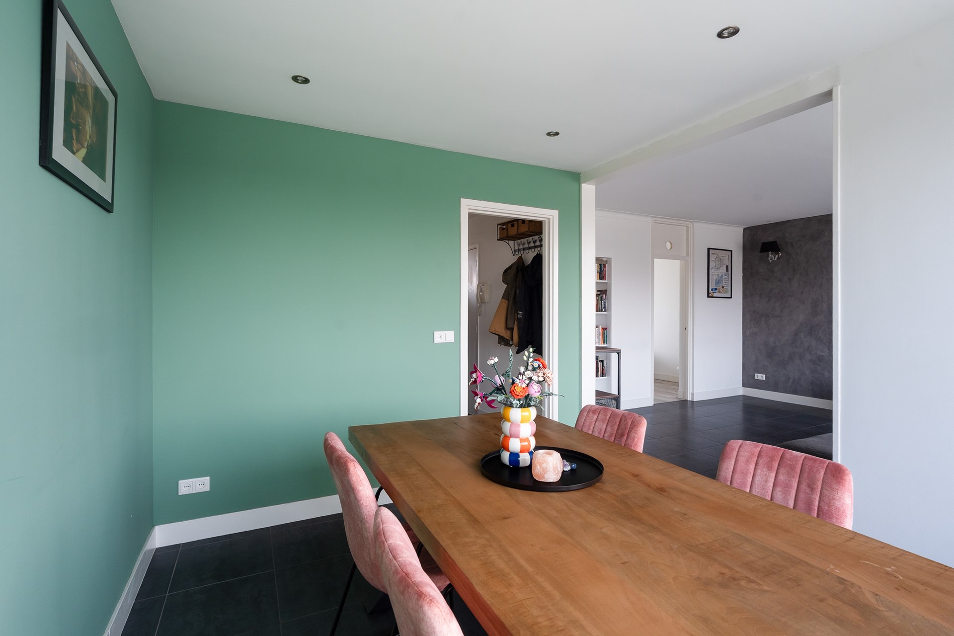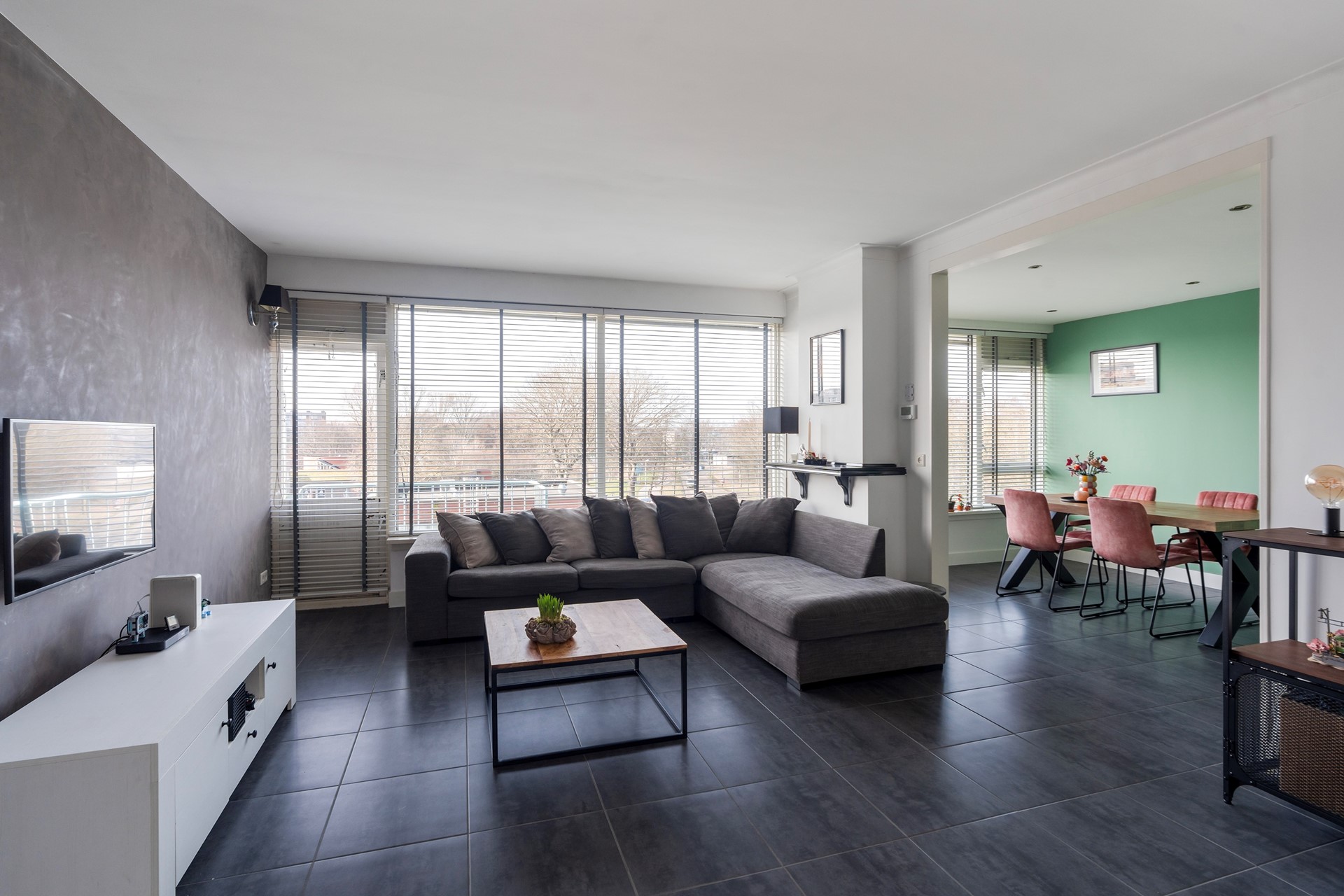 Riant wonen met allure De woonkamer is met recht het hart van de woning te noemen. Dankzij de slimme toevoeging van een extra (slaap)kamer is een bijzonder royale leefruimte ontstaan. Of u nu droomt van een riante loungehoek of een lange eettafel voor uitgebreide diners met vrienden: hier kan het allemaal. De nette plavuizenvloer met comfortabele vloerverwarming loopt naadloos door vanuit de hal, wat zorgt voor een rustige en luxe uitstraling.