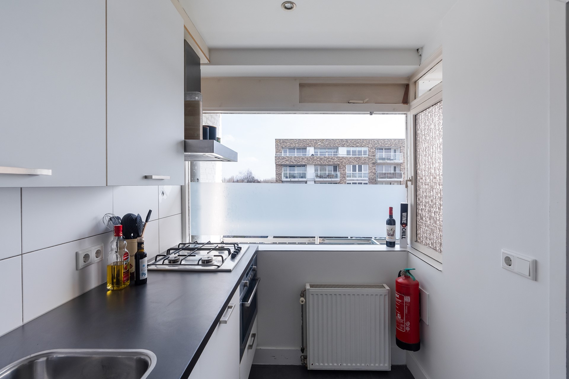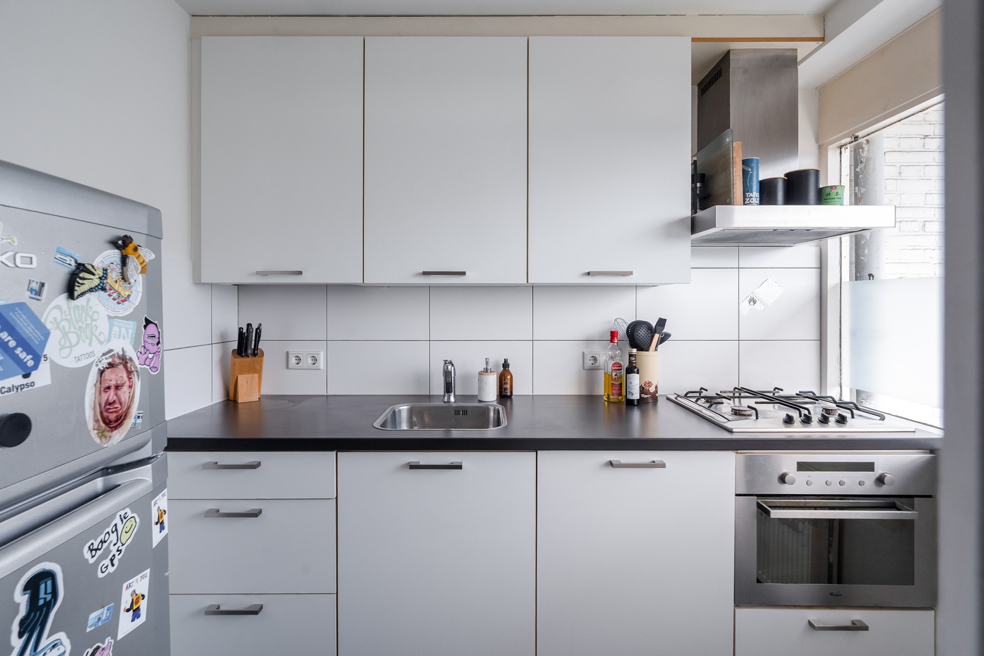 Koken & Genieten De keuken is gesitueerd aan de voorzijde van de woning. Deze functionele ruimte is voorzien van een 4-pits gasfornuis, een losse koel-vriescombinatie en diverse opbergkastjes (waarin tevens de CV-ketel is weggewerkt).