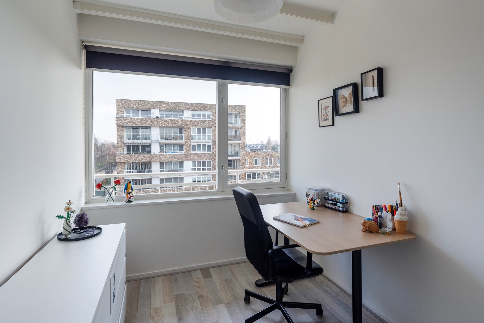 Slaapkamers & Thuiswerken Het appartement heeft twee fijne slaapkamers, beide voorzien van een stijlvolle laminaatvloer. De huidige bewoners gebruiken één van de kamers nu als ideale thuiswerkplek, maar het is natuurlijk ook een prima hoofdslaapkamer of logeerkamer.