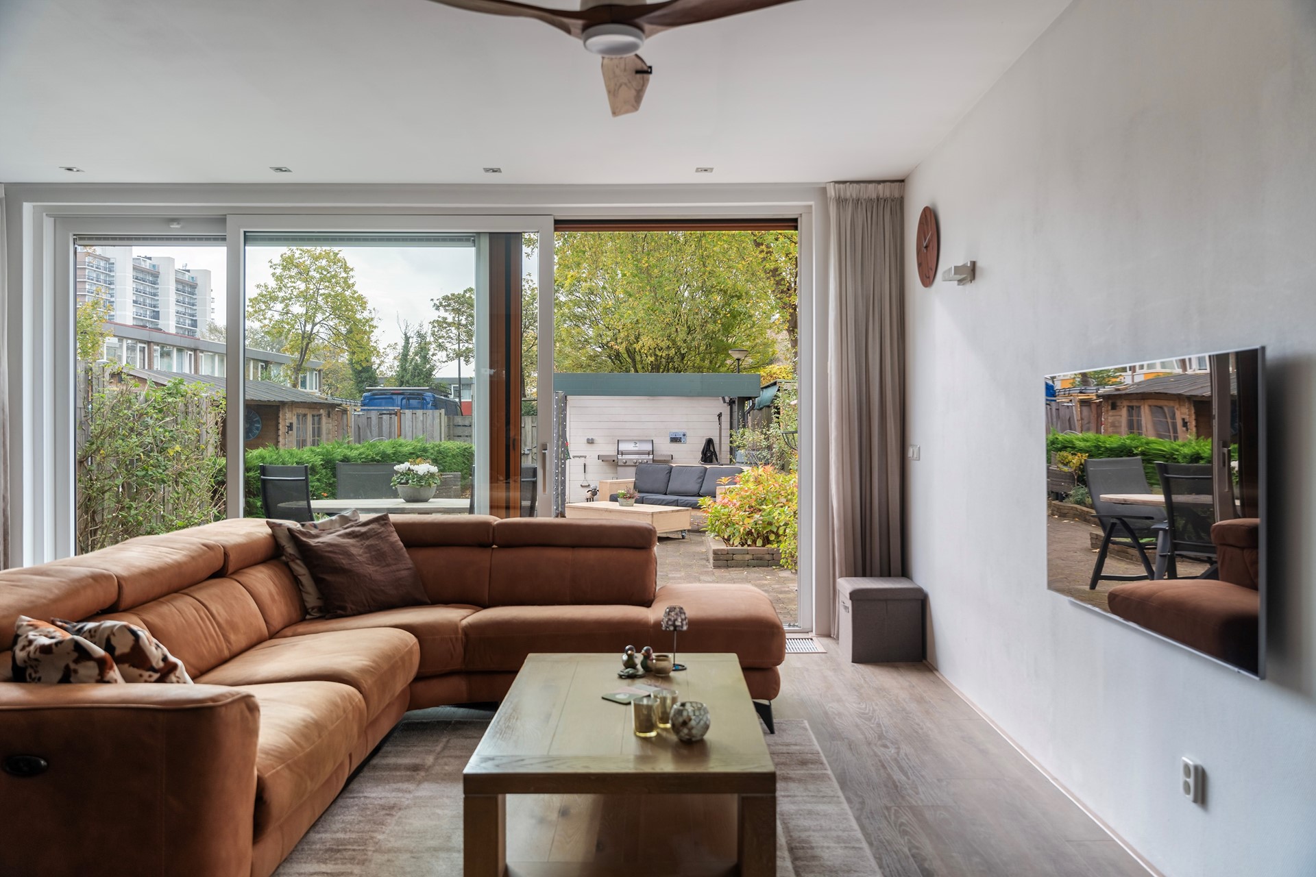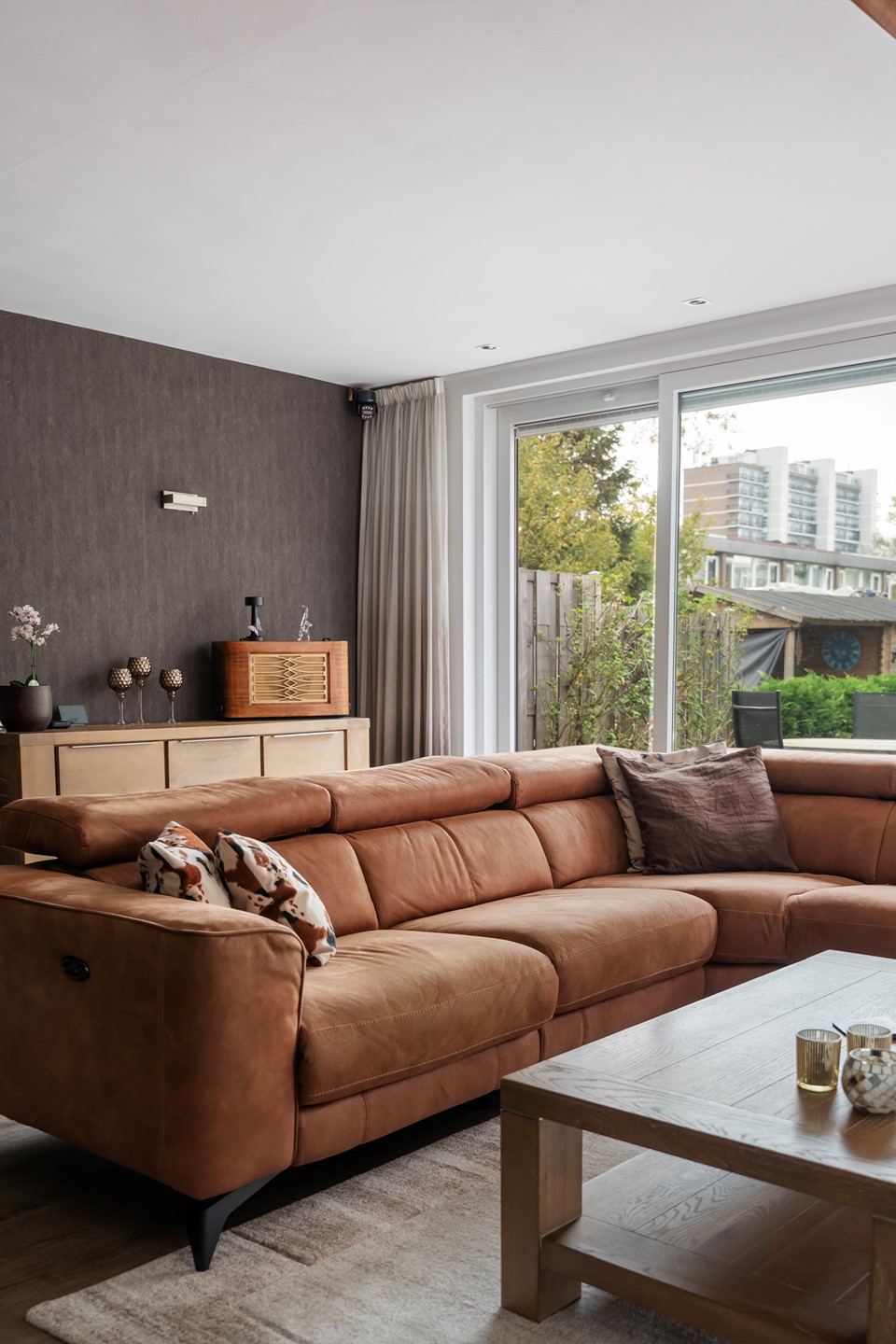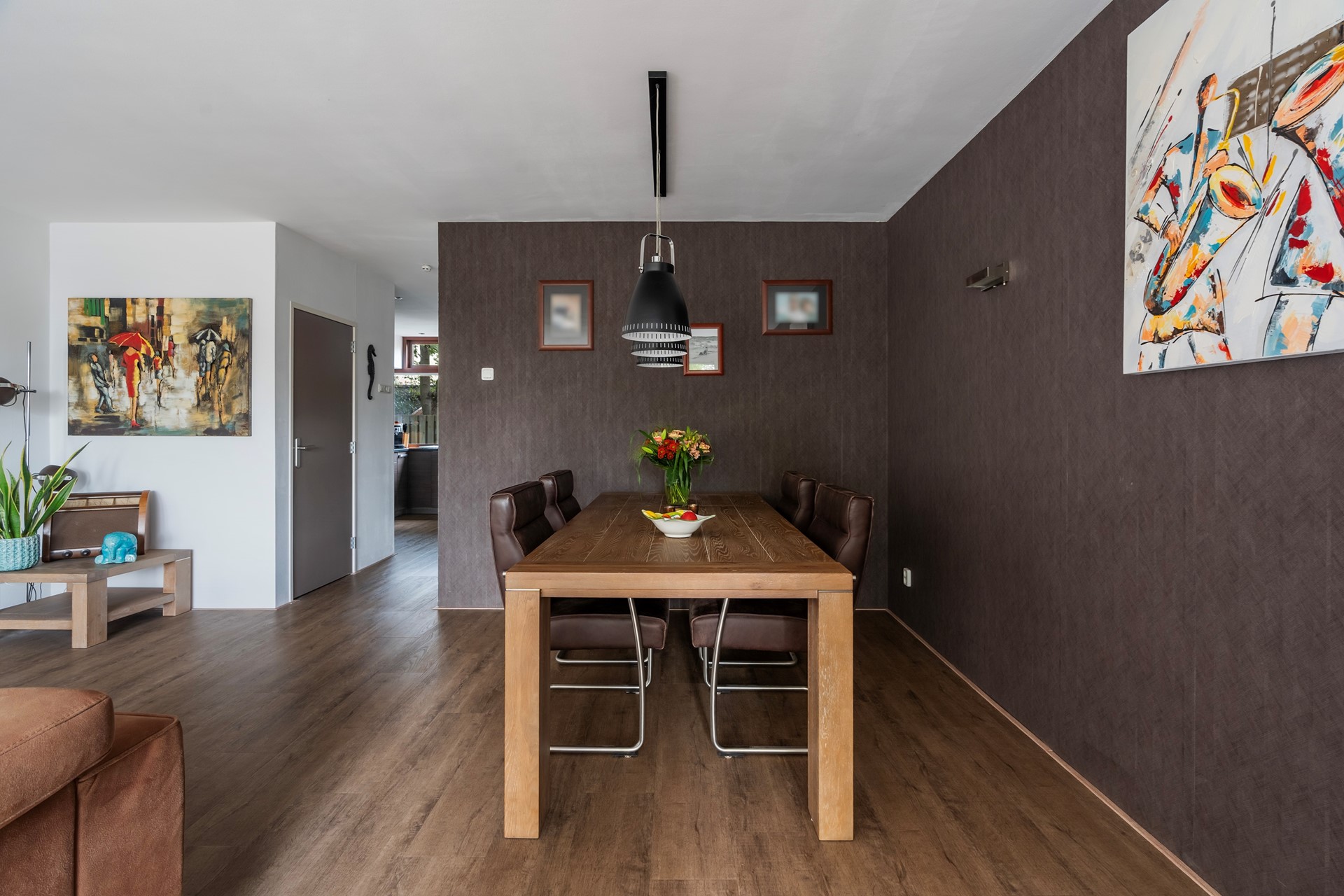 Royaal Woonplezier met Moderne Uitstraling De woning springt direct in het oog dankzij de uitgebouwde woonkamer. Met de grote kunststof schuifpui richting de tuin staat de benedenverdieping in directe verbinding met buiten, waardoor zonlicht vrij spel krijgt. Wat verder meteen opvalt? Genoeg ruimte voor een grote eettafel en bij de schuifpui een heerlijk plek voor een comfortabele zithoek. De hoogwaardige afwerking, de strakke vloeren en natuurlijk de verrassend grote provisiekast – een ideale plek voor voorraad en keukenspullen.