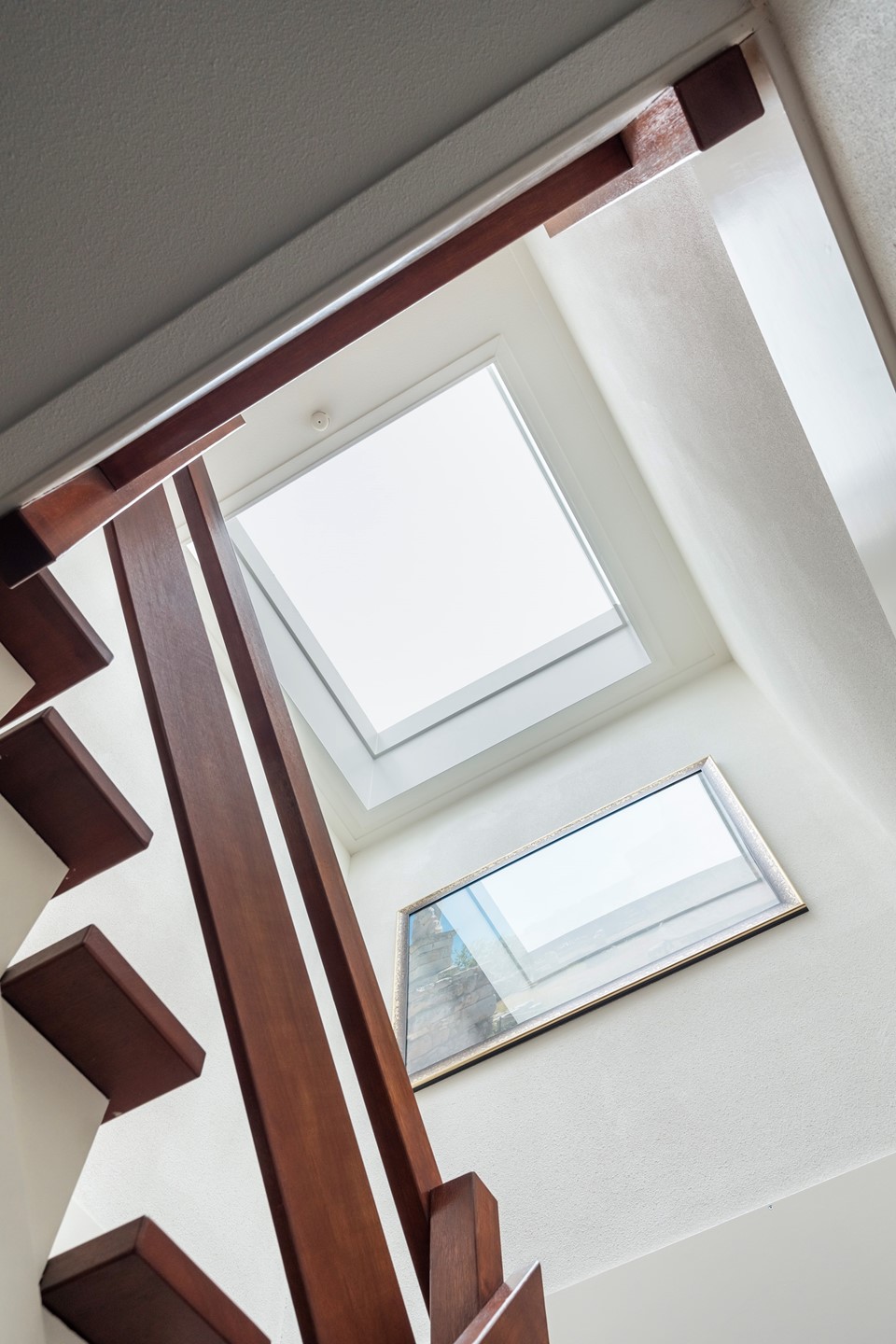 Vijf Slaapkamers – Iedereen zijn Eigen Domein Wat deze woning echt bijzonder maakt, zijn de vijf geweldige, ruime slaapkamers verdeeld over twee etages. Hier hoeven grote gezinnen of thuiswerkers geen concessies te doen. De vertrekken voelen licht en luchtig aan, met dank aan de royale ramen en de prachtige lichtkoepel op het dak, die vooral op de bovenverdiepingen zorgen voor een lichte, aangename sfeer.