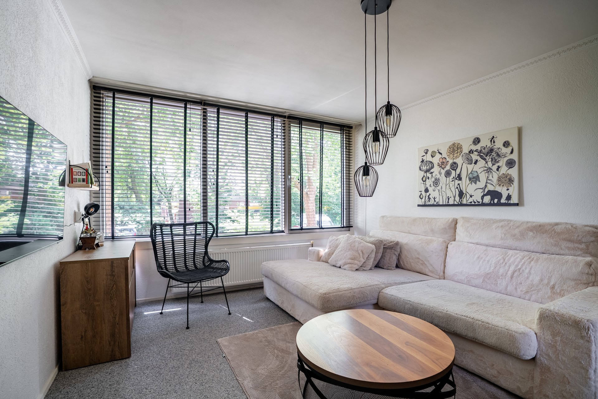 Woonkamer: De lichte woonkamer aan de voorzijde baadt in natuurlijk licht dankzij grote ramen met kunststof kozijnen en dubbele beglazing. De neutrale afwerking en grindvloer maken deze ruimte veelzijdig in te richten naar eigen smaak.