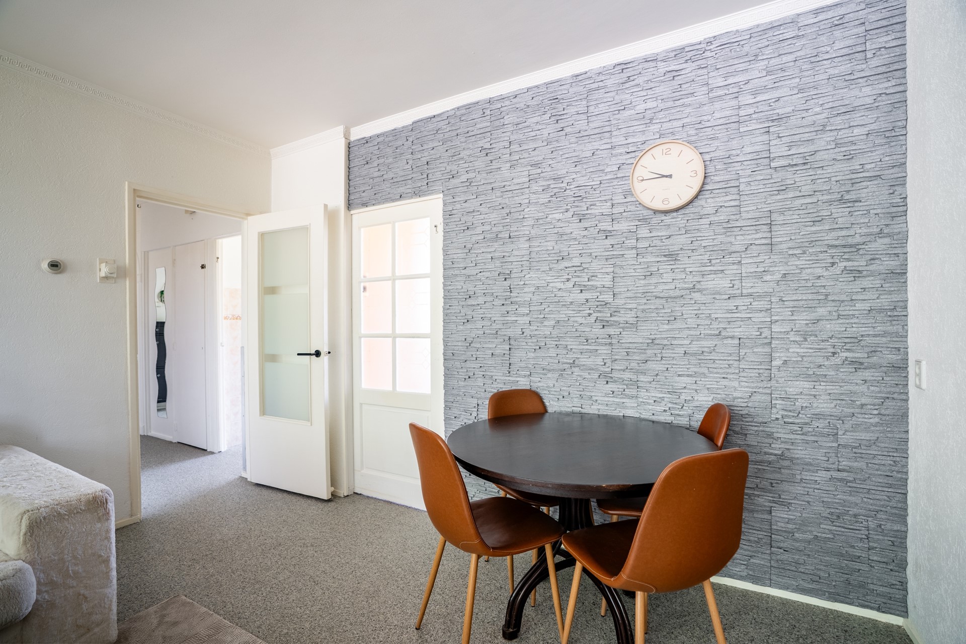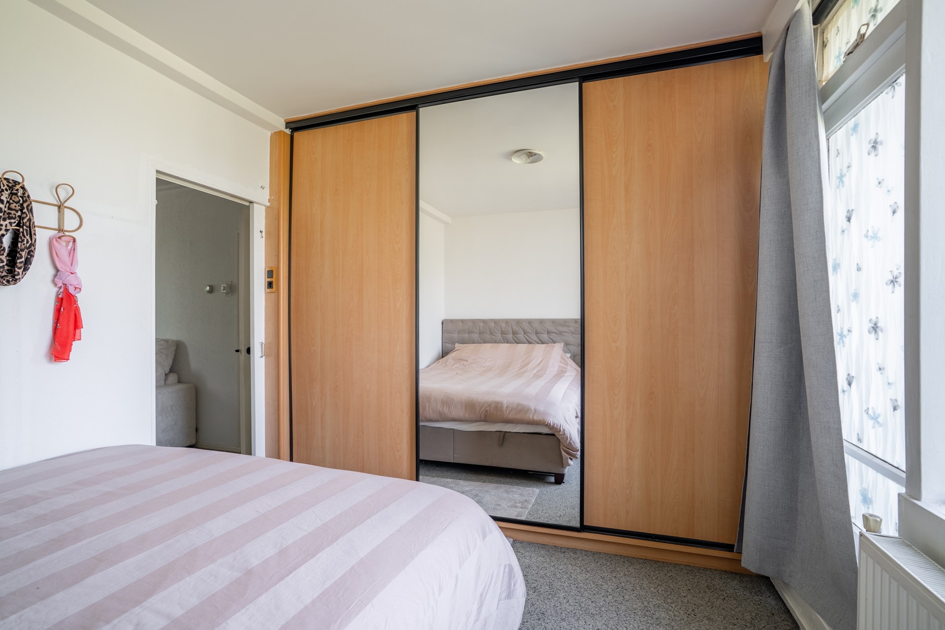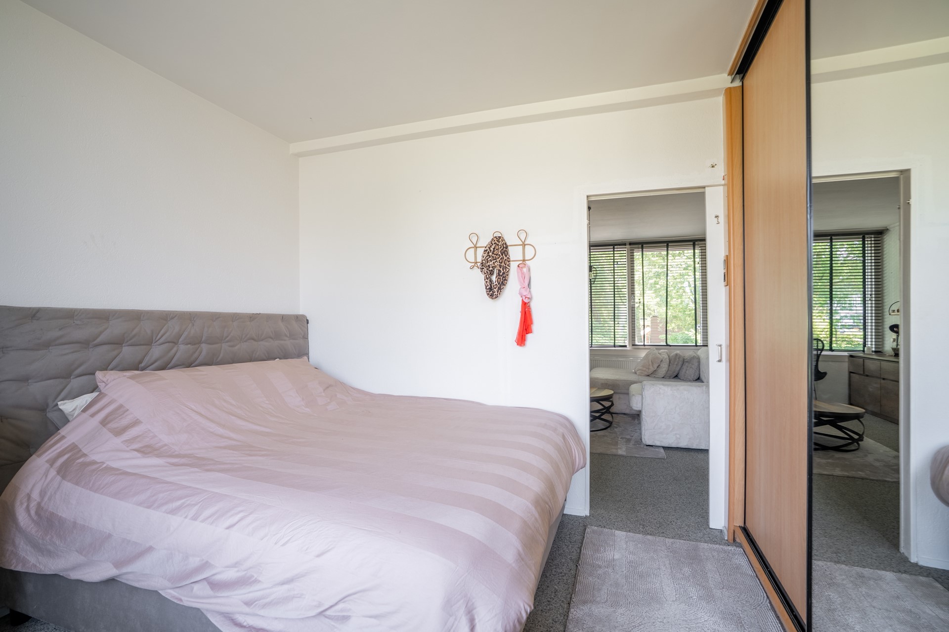 Slaapkamers: De hoofdslaapkamer aan de achterzijde biedt een ruime inbouwkast en directe toegang tot het balkon.