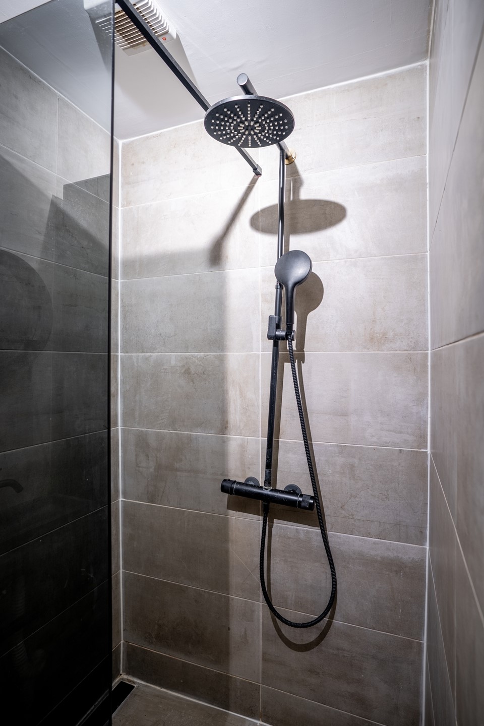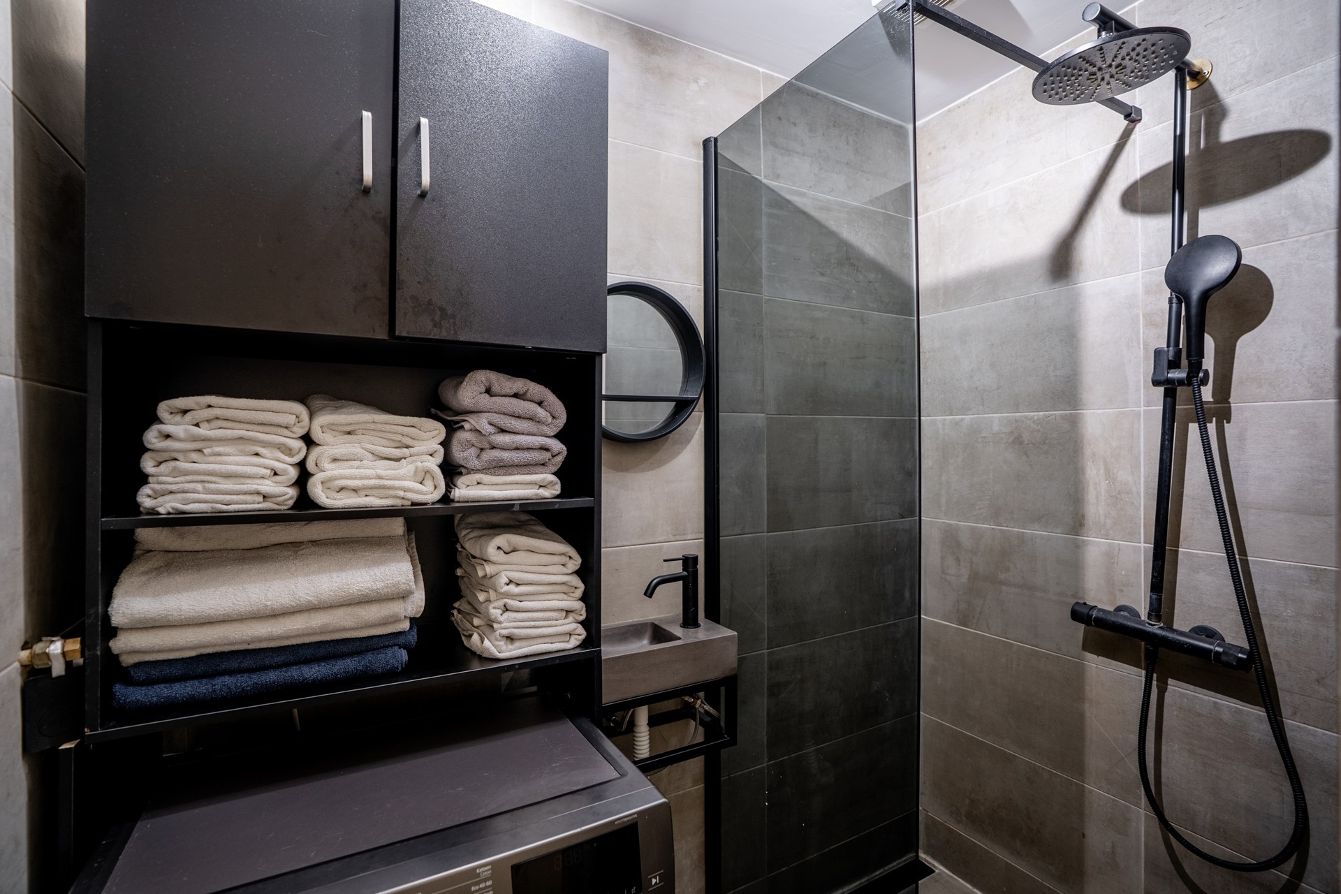 Badkamer: De volledig betegelde badkamer is uitgerust met een wastafelmeubel, inloopdouche, handdoekradiator en wasmachineaansluiting.