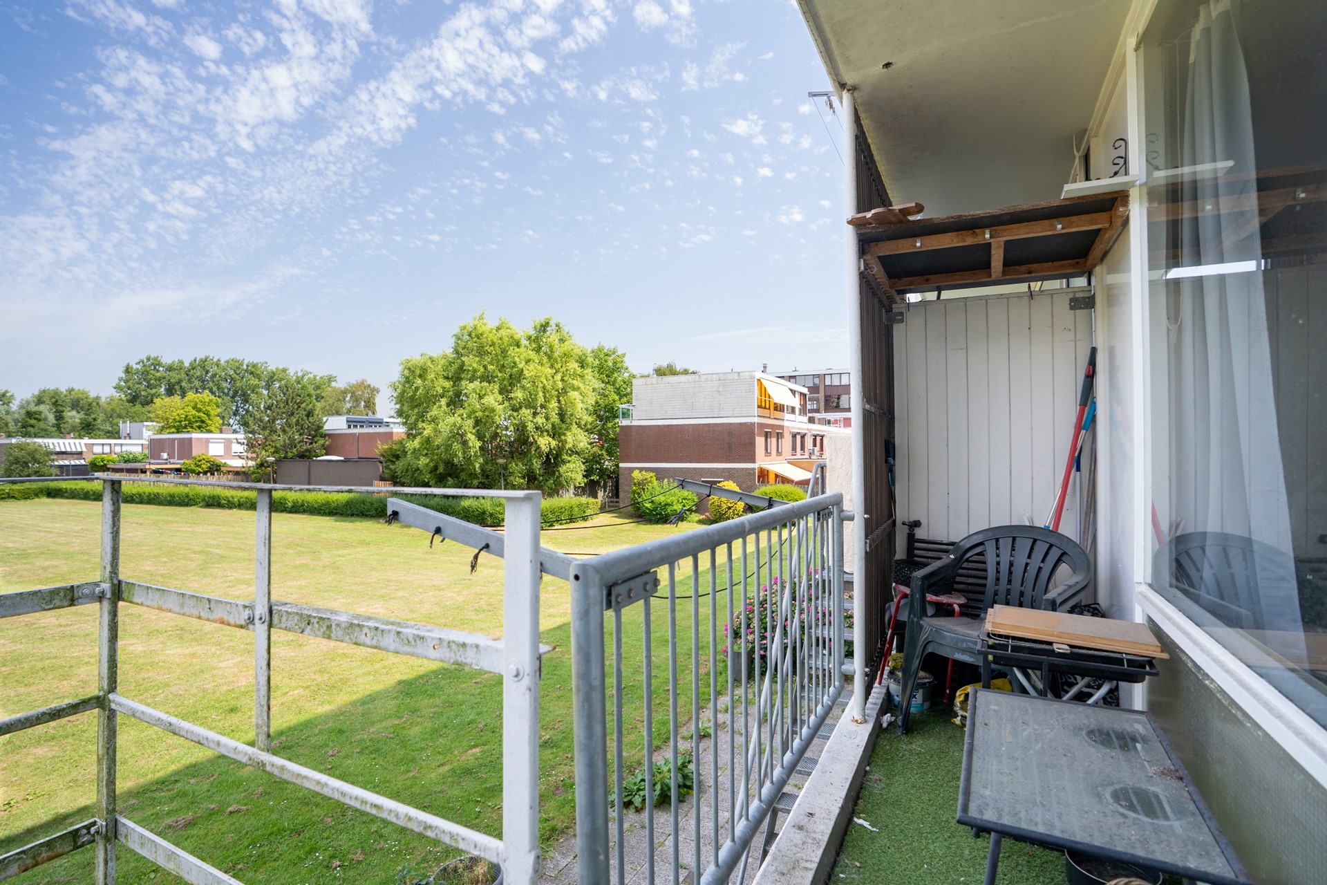 Balkon en Tuin: Het balkon aan de achterzijde biedt een rustig plekje met uitzicht op de gemeenschappelijke tuin. Via een trap bereik je de goed onderhouden tuin, ideaal voor ontspanning of spelende kinderen.